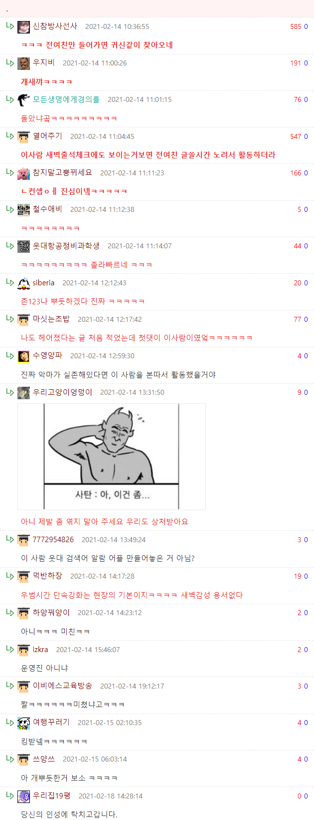 »ó´ë¹æ¿¡ ´ëÇÑ ¹è·Á´Â ³×ƼÄÏÀÇ ±âº»ÀÔ´Ï´Ù.°Ô½Ã¹°¿¡ »ó°ü¾ø´Â ´ä±ÛÀ̳ª ÃßõÀ¯µµ¼º ´ä±ÛÀ» ´ÞÁö ¸¶¼¼¿ä.