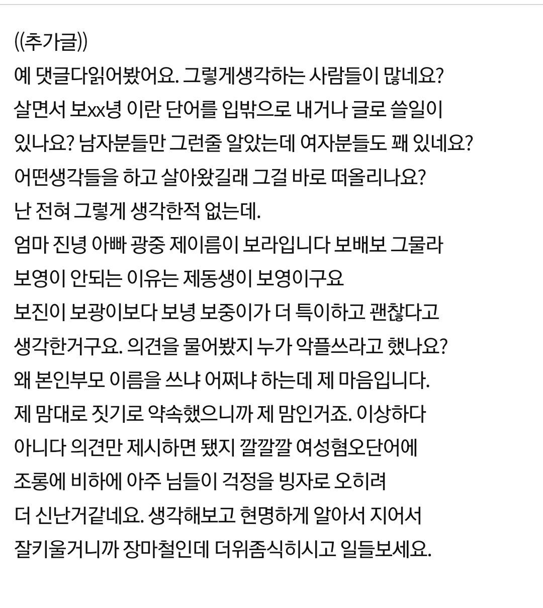 ¿¹Àü¿£ ³»À̸§ ÈçÇØ¼ ½È¾îÇߴµ¥, ¿äÁò ¿Ã¶ó¿À´Â ±ÛÀ̳ª °³¸í ½ÅûÇÑ À̸§ º¸´Ï±î ±×°Å Çϳª¸¸Àº ºÎ¸ð´ÔÇÑÅ× °¨»çÇÏ´õ¶ó.