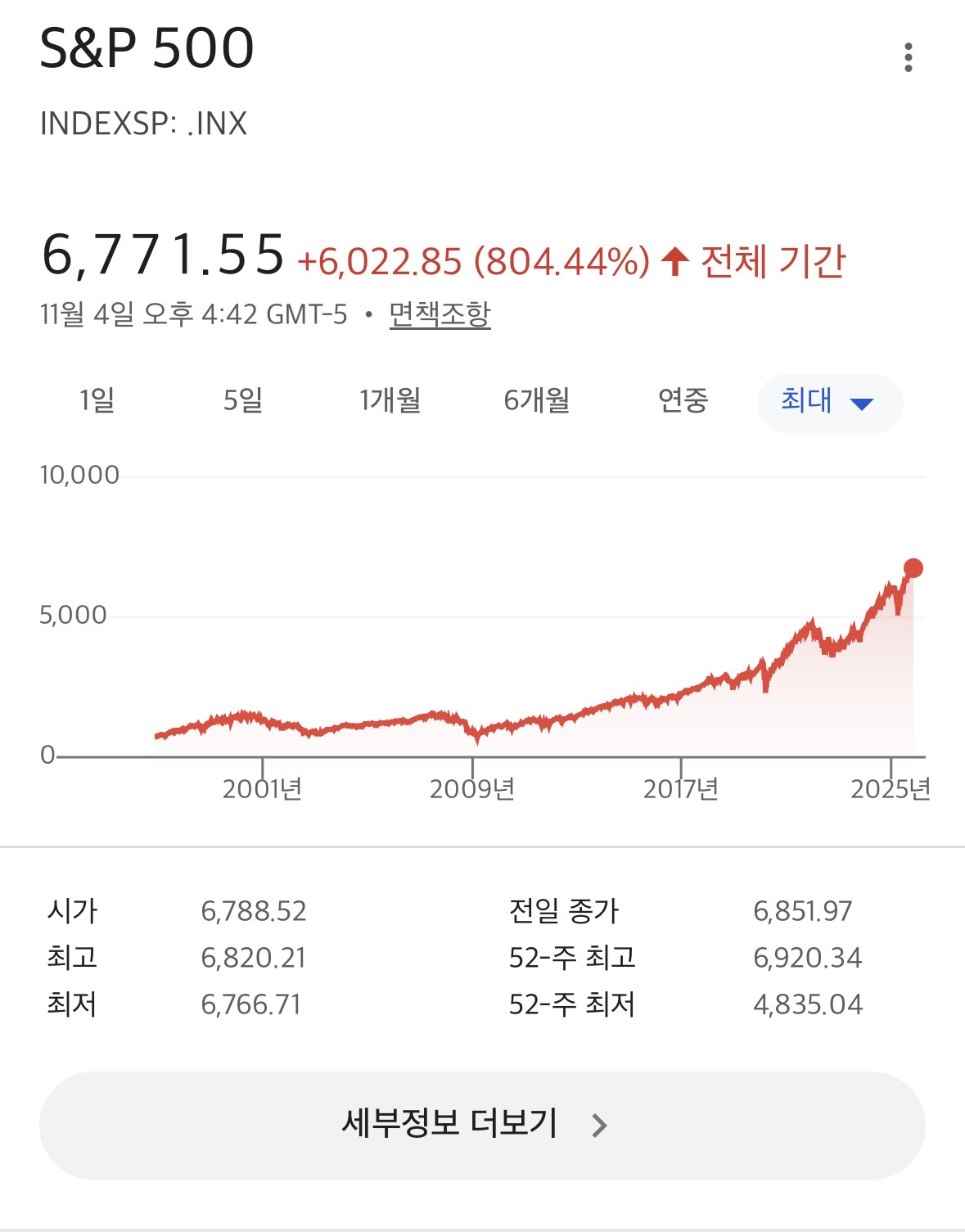 À§´Â S&P500À̶ó´Â Áö¼öÀε¥ °¢°¢ Àüü±â°£/25³â/1³â ±×·¡ÇÁÀÓ