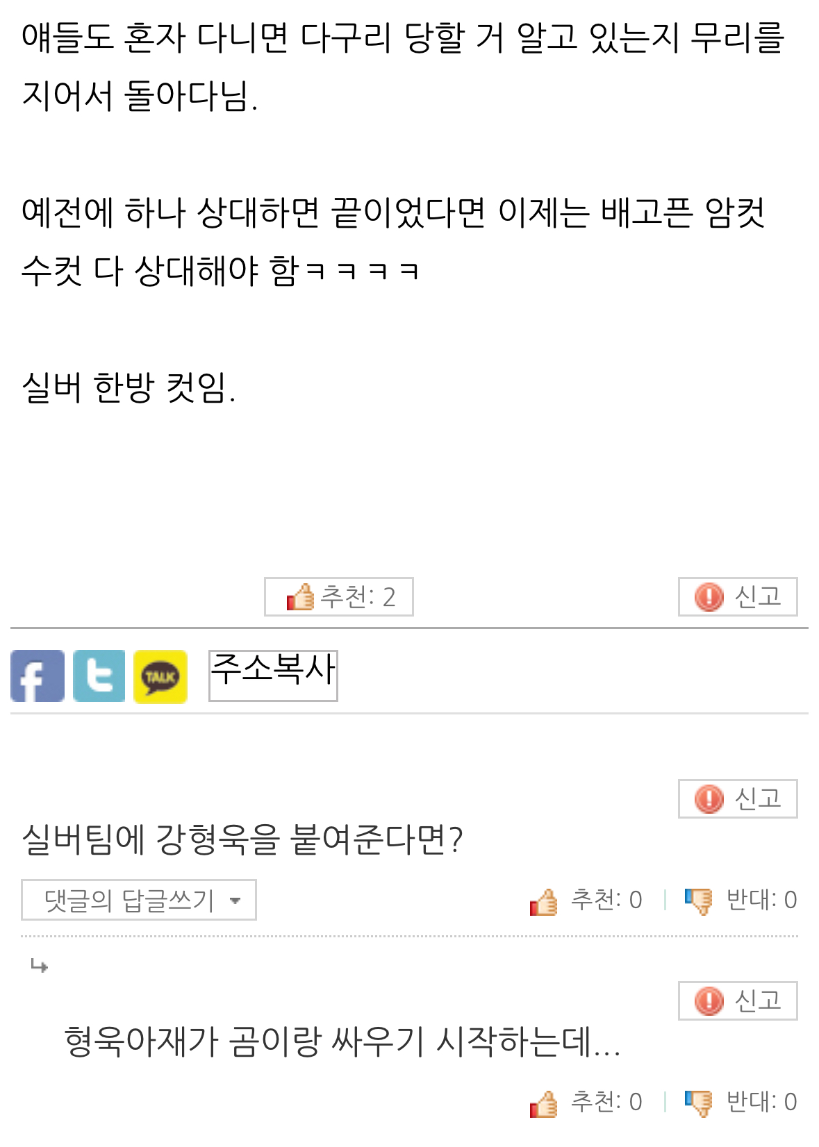 ¨è ³»°¡ ¿Ç´Ù°í ÇÏ´õ¶óµµ Á¶¿ëÈ÷ ½Å°í¸¸ ÇÏ½Ã°í »ó´ë¹æÀ» ºñ³­ÇÏ´Â ±ÛÀ» ¾²Áö´Â ¸¶¼¼¿ä. À̰÷Àº ¿Ç°í ±×¸§À» °¡¸®´Â °÷ÀÌ ¾Æ´Õ´Ï´Ù.