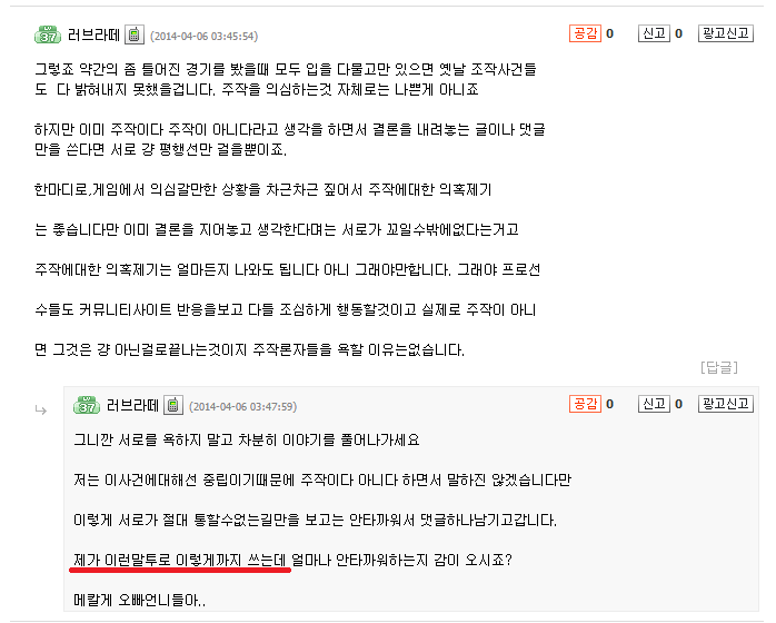 ¨è ³»°¡ ¿Ç´Ù°í ÇÏ´õ¶óµµ Á¶¿ëÈ÷ ½Å°í¸¸ ÇÏ½Ã°í »ó´ë¹æÀ» ºñ³­ÇÏ´Â ±ÛÀ» ¾²Áö´Â ¸¶¼¼¿ä. À̰÷Àº ¿Ç°í ±×¸§À» °¡¸®´Â °÷ÀÌ ¾Æ´Õ´Ï´Ù.