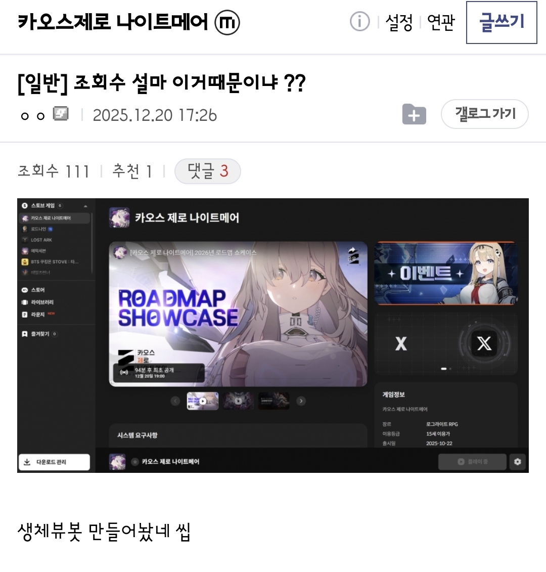 ¡å ÀÌÀü±Û ³Ê¹« Á¹·Á¼­ 10ºÐ ÀÚ°í ÀϾ´Âµ¥ ´«Æ÷¹ü°í·¡ 6 0 1 0 2025-12-20 [17:32]
