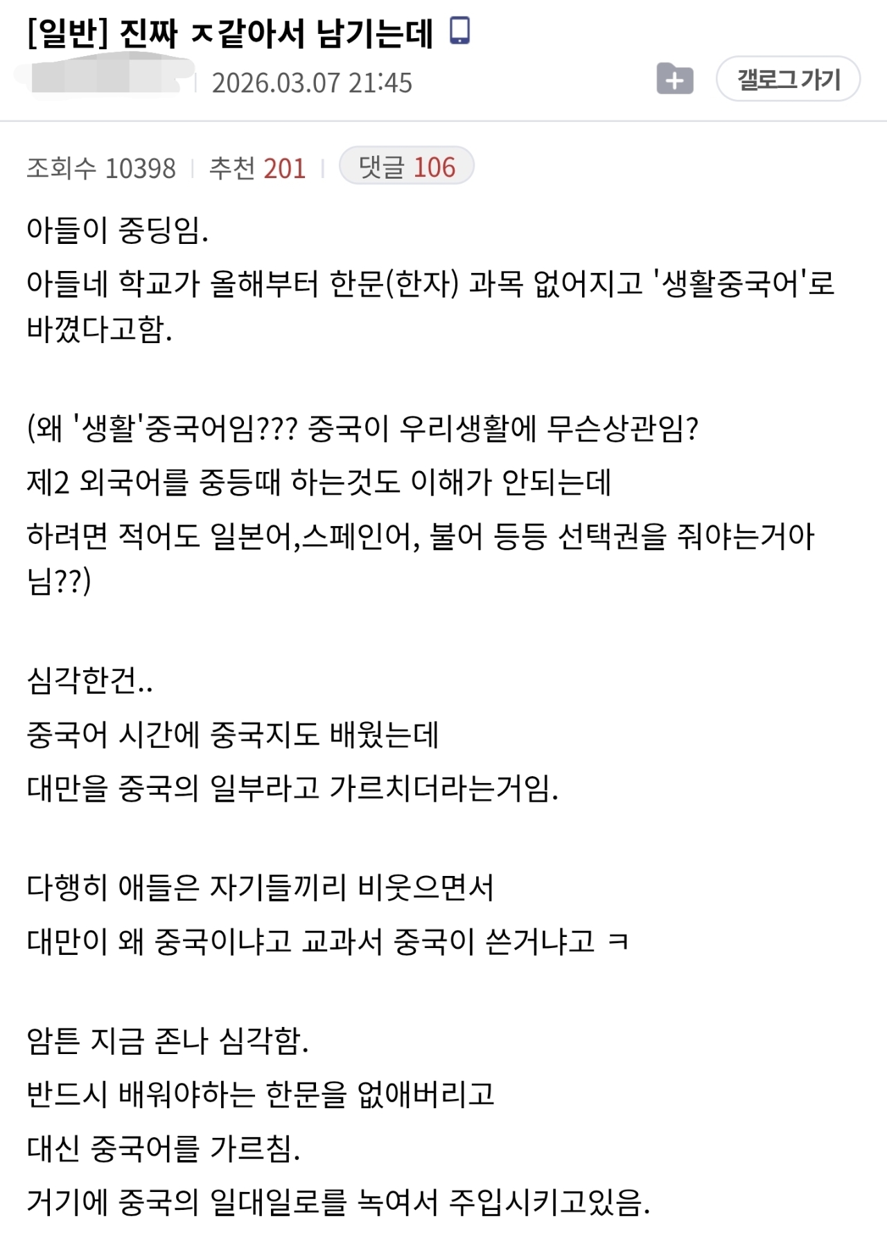 2022°³Á¤ ±³À°°úÁ¤ÀÇ »ýȰ¿Ü±¹¾î Áß ÇϳªÀÓ ÀϺ»¾î Áß±¹¾îµî ¿©·¯°¡ÁöÀÖÀ½ ¼±ÅñºÀ̶ó°í ÇØ¼ ÇÑÀÚ³ª »ýȰ¿Ü±¹¾î Áß Çϳª ¼±ÅÃÇÒ¼öÀִµ¥ ´ëºÎºÐ Çб³¿¡¼ º¸Åë ¿Ü±¹¾î¸¦ ¼±ÅÃÇϴ°Š°°°í ¼¿ï½Ã³» ±âÁØÀ¸·Î ÀϺ»¾î Áß±¹¾î Áß Çϳª¸¦ ¸¹ÀÌ °¡¸£Ä¡´Â°Å °°Àºµ¥ Áß±¹¾î °¡¸£Ä¡´Â Çб³°¡ ´õ ¸¹Àº°Å °°À½ °Á¦¶ó°í ÇÏ¸é °Á¦±äÇÔ ±³À°°úÁ¤ °³Á¤µÇ¸é¼ °í±³ÇÐÁ¡Á¦°¡ »ý°åÁö¸¸ ÁßÇб³´Â ¾Æ´Ï´Ï±î Çб³¸¶´Ù ÀϺ»¾î ¼±»ý´Ô1 Áß±¹¾î ¼±»ý´Ô1 ´Ù µÑ¼ö ¾øÀ¸´Ï ÀÚ¼¼ÇÑ°Ç ÀçÁ÷ÀÚ ±³»çºÐµéÀÌ ¾Ë·ÁÁֽǵí