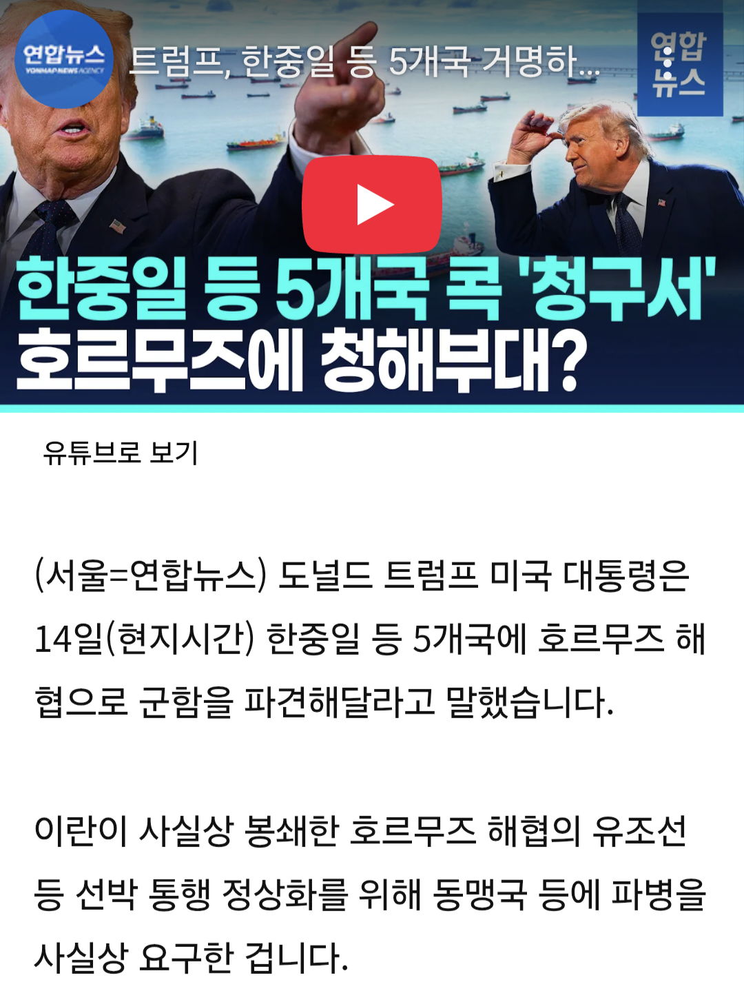 Á¦¸ñ [¿µ»ó] Æ®·³ÇÁ, ÇÑÁßÀÏ µî 5°³±¹ °Å¸íÇϸç "±ºÇÔ º¸³»¶ó" [8]