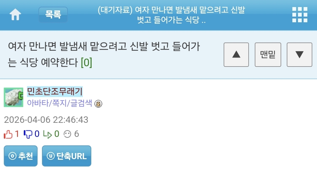 ¹øÈ£ 12142778 Ãßõ 6 ¹Ý´ë 0 ´ä±Û 21 Á¶È¸ 138 ÀÛ¼º½Ã°£ 2026-04-06 22:46:43