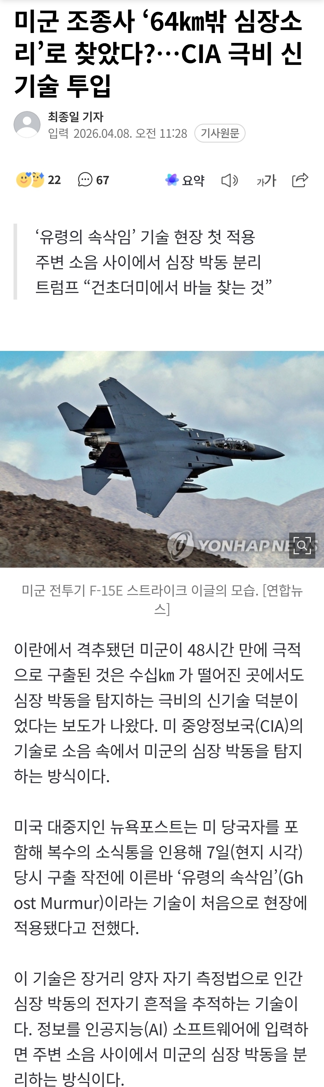 Á¦¸ñ ¹Ì±º Á¶Á¾»ç ¡®64§°¹Û ½ÉÀå¼Ò¸®¡¯·Î ã¾Ò´Ù?¡¦CIA ±Øºñ ½Å±â¼ú ÅõÀÔ [8]