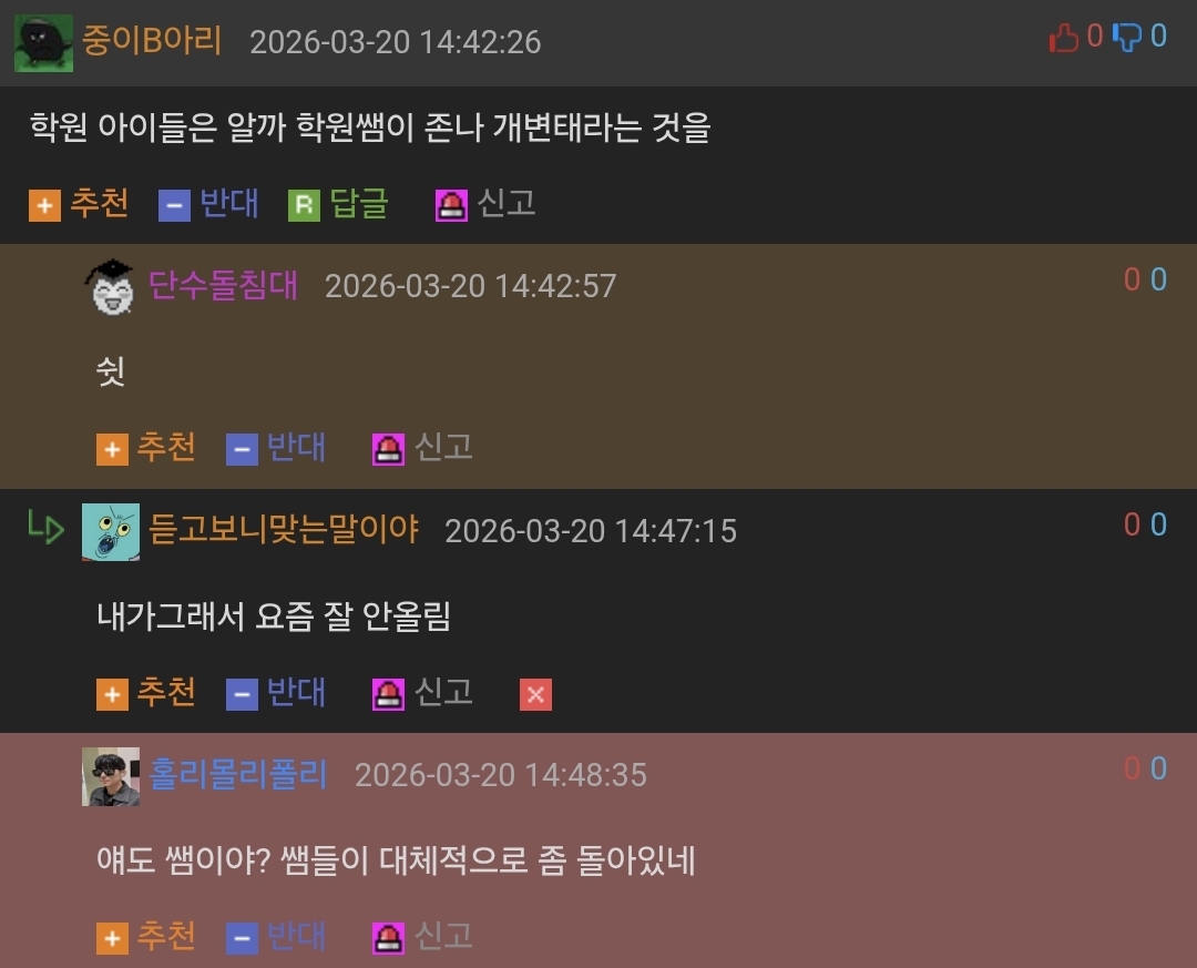 ¨è ³»°¡ ¿Ç´Ù°í ÇÏ´õ¶óµµ Á¶¿ëÈ÷ ½Å°í¸¸ ÇÏ½Ã°í »ó´ë¹æÀ» ºñ³­ÇÏ´Â ±ÛÀ» ¾²Áö´Â ¸¶¼¼¿ä. À̰÷Àº ¿Ç°í ±×¸§À» °¡¸®´Â °÷ÀÌ ¾Æ´Õ´Ï´Ù.