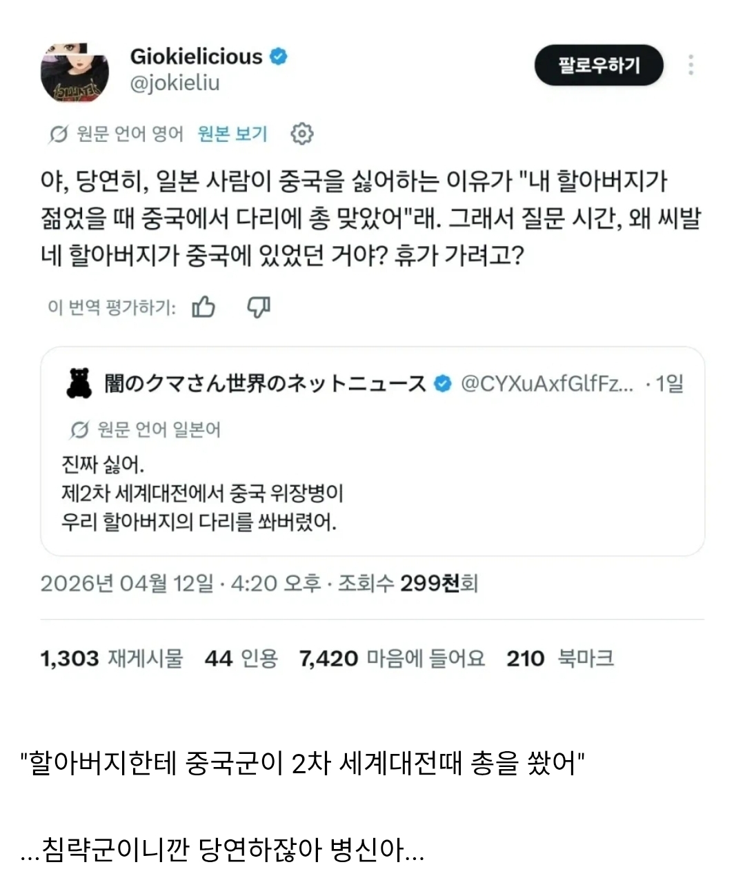 À̰б״ÙÀ½ Çѱ¹ÀÎ ±ÛÀÌ ¿ô±â´øµ¥. ´Ù¸®°¡ ¾Æ´Ï¶ó ºÎ¶öÀ» ½úÀ¸¸é ÀÌ·± ±Û ¾È ºÁµµ µÆ´Ù°í