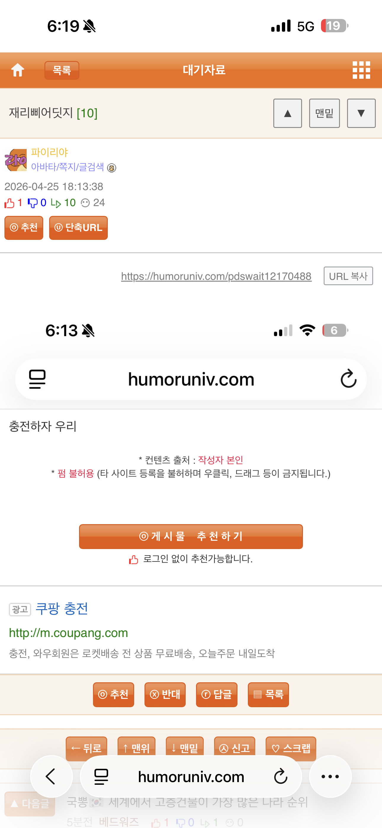 | ´ÜÃà URL: https://humoruniv.com/pdswait12170488 URL º¹»ç |