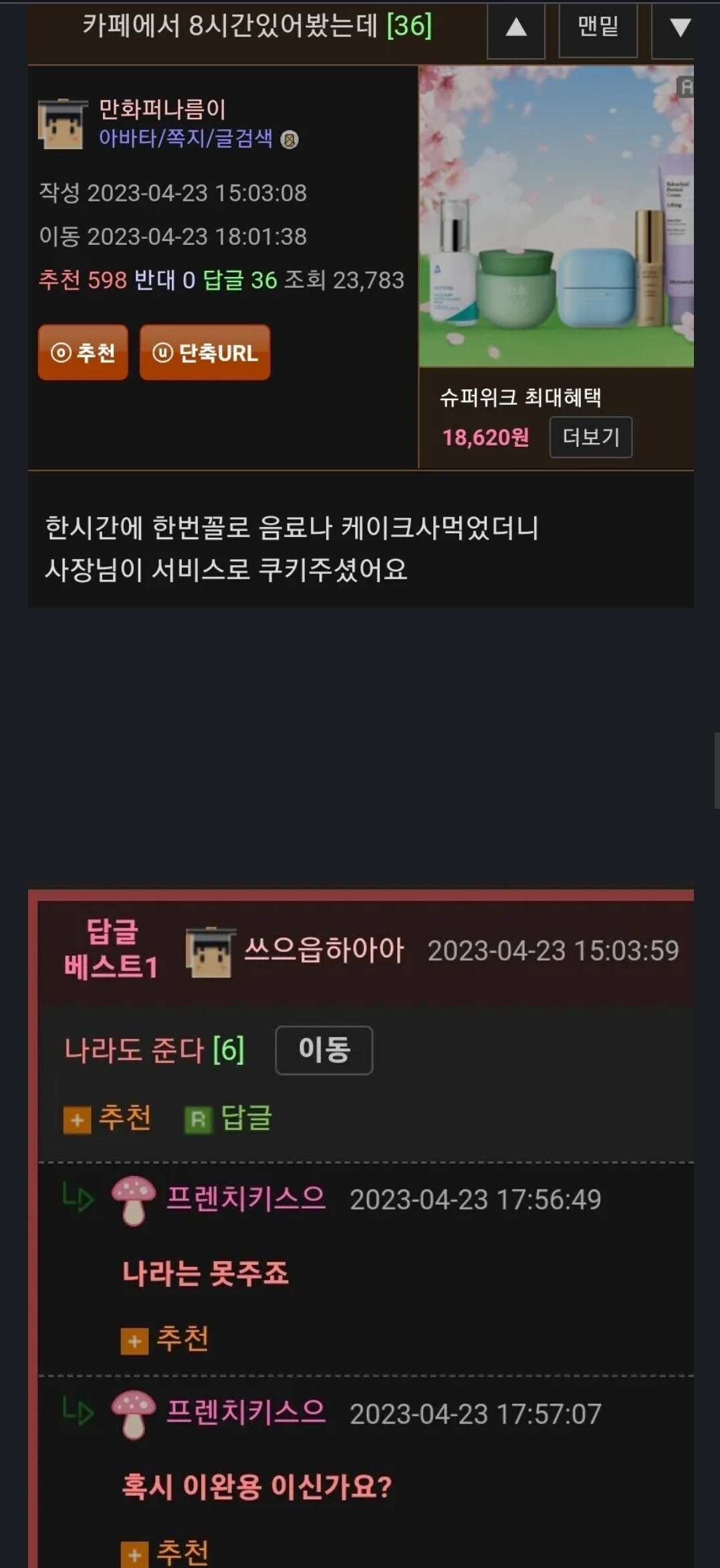 »ó´ë¹æ¿¡ ´ëÇÑ ¹è·Á´Â ³×ƼÄÏÀÇ ±âº»ÀÔ´Ï´Ù.°Ô½Ã¹°¿¡ »ó°ü¾ø´Â ´ä±ÛÀ̳ª ÃßõÀ¯µµ¼º ´ä±ÛÀ» ´ÞÁö ¸¶¼¼¿ä.