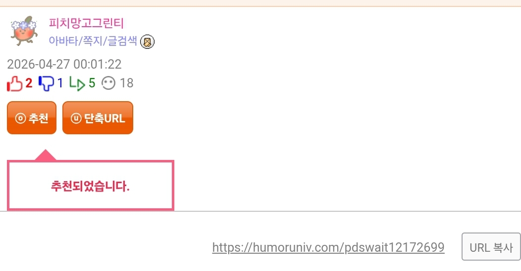 ´ÜÃà URL: https://humoruniv.com/pdswait12172699 URL º¹»ç
