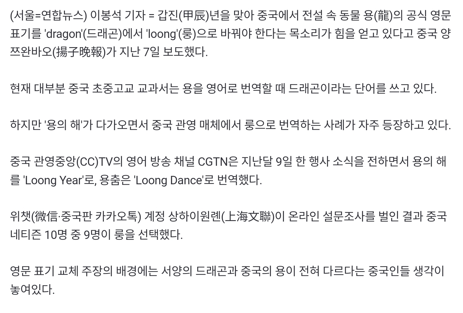 »ç½Ç ¼¾ç¿ë µ¿¾ç¿ë ±¸ºÐÁö¾î¾ß ÇÏ´Â °Ô ¸Â±ä Çѵ¥ Áß±¹³ðµéÀº Çѱ¹ÀÇ 'Yong' ÀϺ»ÀÇ 'Ryu' º£Æ®³²ÀÇ 'Rong' µîµî ¾Æ½Ã¾Æ±Ç ¿ëµé ÀüºÎ ÀÚ±â³× ³ª¶ó 'Loong'¿¡ ÆíÀÔ½Ãų °Å °°Àº °Ô ¹º°¡ ¿¹ÞÀ½ ±¸Á¤ ¼¼´Â °Ô Áöµé¸¸ ÀÖ´Â °Íµµ ¾Æ´Ñµ¥ ÀÚ²Ù 'Lunar New Year'¶ó°í ¾ÈÇϰí 'Chinese New Year'¶ó°í ÇÏ´Â °Íó·³