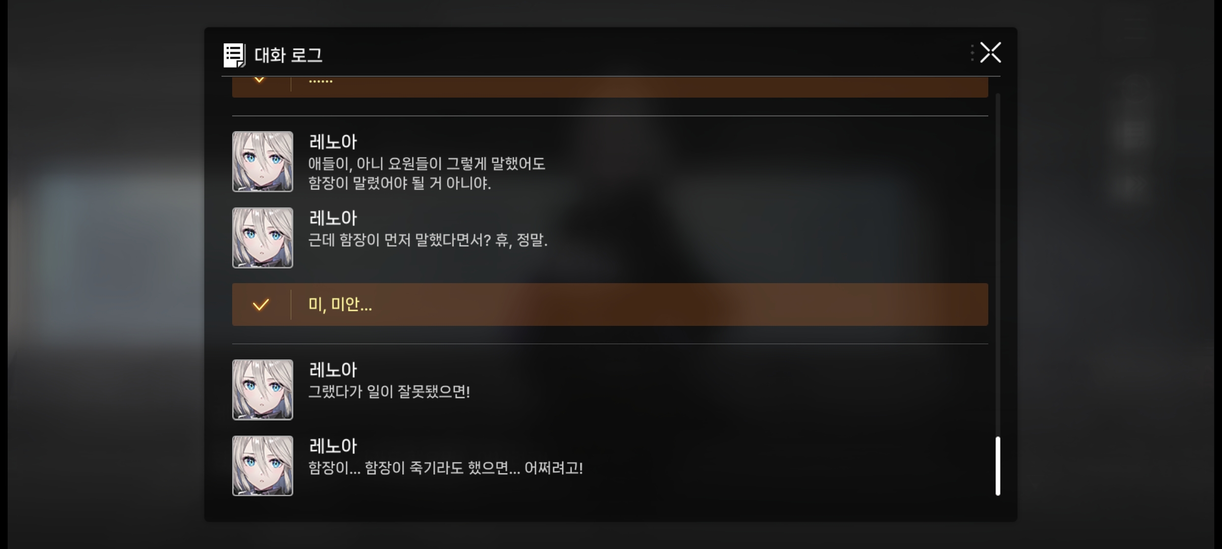 7. ºÎÇÔÀåÀÌ ÁÖÀΰøÀ» ¹Ù°¡Áö ±Ü´Â´Ù. ·¹³ë¾Æ°¡ Ä«¿À½º¿¡ È¥ÀÚ ³²¾ÒÀ»¶§ ÇÔÀåÀÌ Áö´Ñ ÀüÅõ¿øµéÀº ÀüºÎ ÀüÅõ°¡ Èûµç ±²ÀåÈ÷ ¼Ò¸ðµÈ »óÅ¿´½À´Ï´Ù. ±Ùµ¥ ÁÖÀΰøÀÎ ÇÔÀåÀÌ ¶¼¸¦ ½á¼ ·¹³ë¾Æ¸¦ ±¸Çϱâ À§ÇØ ´Ùµé Ä«¿À½º¿¡ ÅõÀÔµÇÁÒ. ÀÚ½ÅÀ» ±¸Çϱâ À§ÇØ ÁÖÀΰø°ú ¸ðµç µ¿·áµéÀÇ ¸ñ¼ûÀ» Àú¿ï¿¡ ¿Ã¸° ÁÖÀΰøÀ» Å¿ÇÏ´Â °Ì´Ï´Ù. ÀÌÈÄ ´«¹°±îÁö Â¥¸é¼ °¨µ¿ÀûÀÎ ÆÄÆ®·Î °¬´Ù°¡ °á±¹ °¨»çÀλ縦 ÇÏÁÒ. »ç½Ç À̰͵µ µÇ°Ô Ŭ¸®¼ÎÀûÀÎ Àå¸éÀÔ´Ï´Ù. ±Ùµ¥ À¯µ¶ ÀÌ °ÔÀÓ¸¸ ºÒÆíÇÑ ÀÌÀ¯´Â ¹» ±î¿ä? ±×°Ç ´«¿¡ ÇÁ·¹ÀÓÀ» ½á¼°ÚÁÒ?
