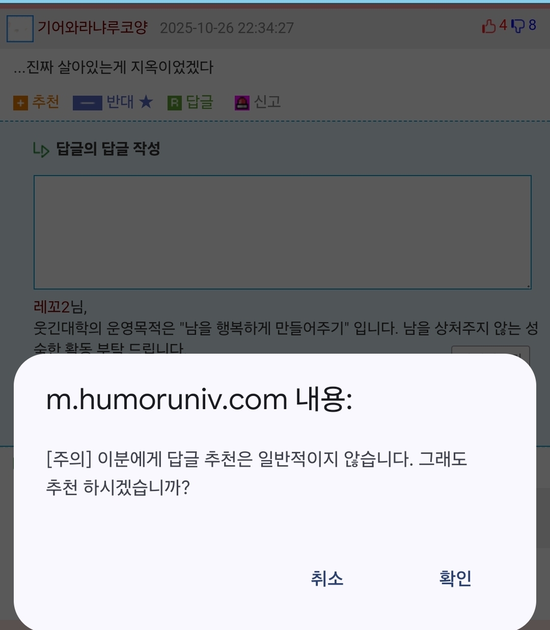 »ó´ë¹æ¿¡ ´ëÇÑ ¹è·Á´Â ³×ƼÄÏÀÇ ±âº»ÀÔ´Ï´Ù.°Ô½Ã¹°¿¡ »ó°ü¾ø´Â ´ä±ÛÀ̳ª ÃßõÀ¯µµ¼º ´ä±ÛÀ» ´ÞÁö ¸¶¼¼¿ä.
