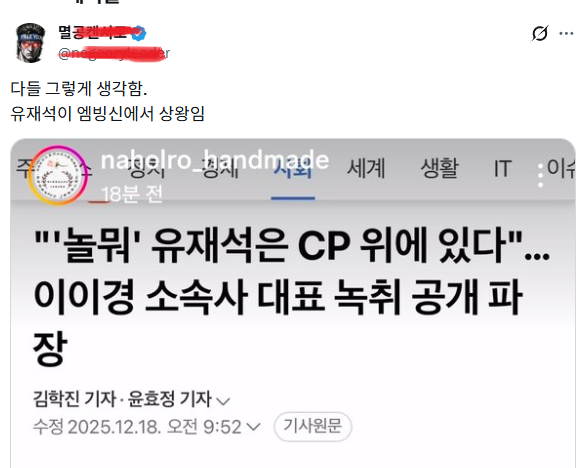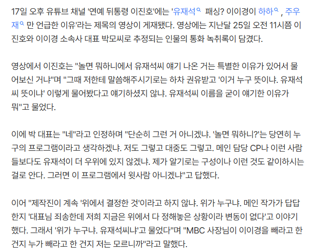 ÃÖ±Ù ÀÌÀ̰æ À¯Àç¼® ÆÐ½Ì ³í¶õ¿¡ ´ëÇÑ ¿µ»óÀ» ¿Ã¸®°í