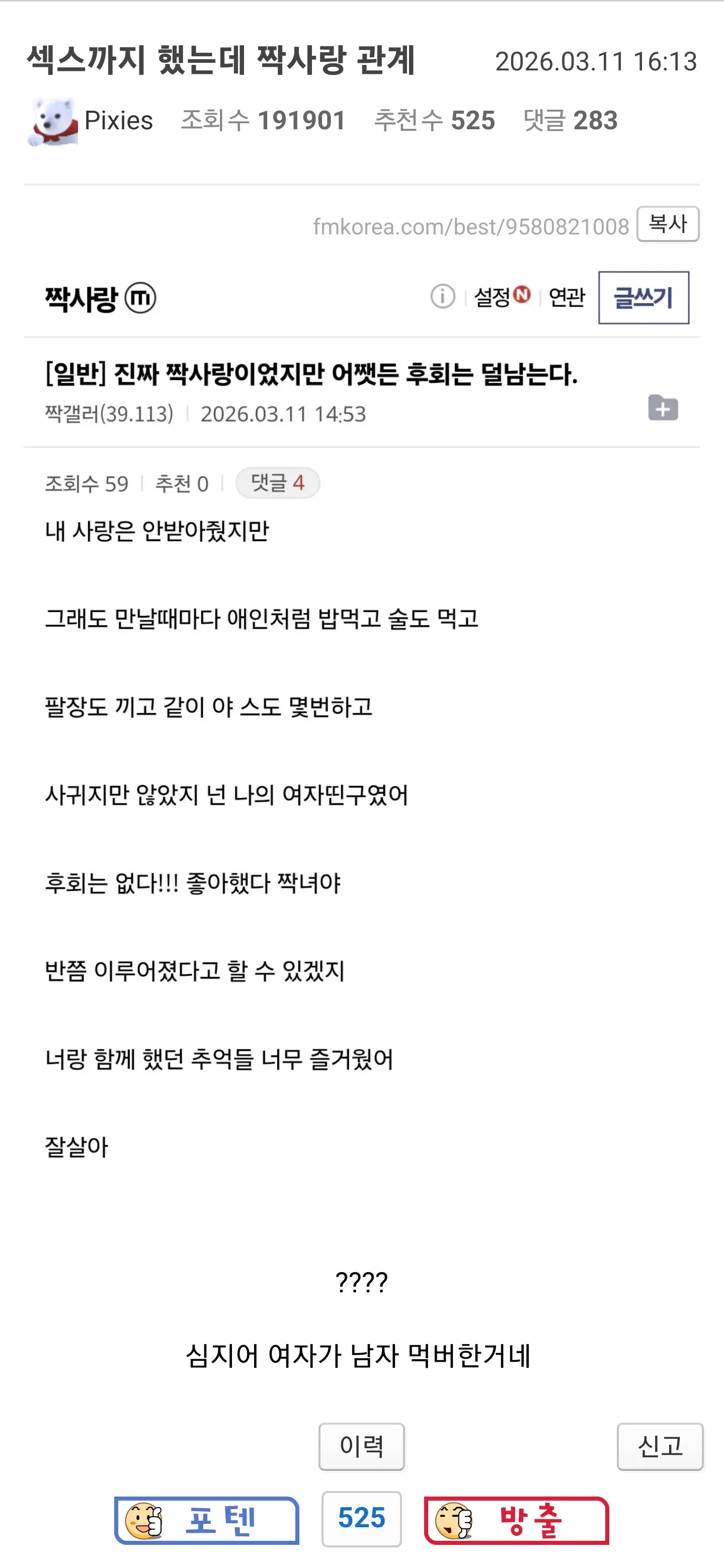 Àú·± °ü°è¿¡¼ ÁøÁöÇÑ °ü°èµÅµµ ¹®Á¦ÀÓ. ´Ù¸¥ ³²ÀÚµéÇÏ°íµµ ÀÌ·± °ü°è¿´°ÚÁö?? »ý°¢ÇÏ¸é¼ Á¤»óÀûÀÎ ¿¬¾Ö ¸øÇÒµí. Àü³²Ä£ ÁúÅõ¶ûÀº °áÀÌ ´Þ¶ó
