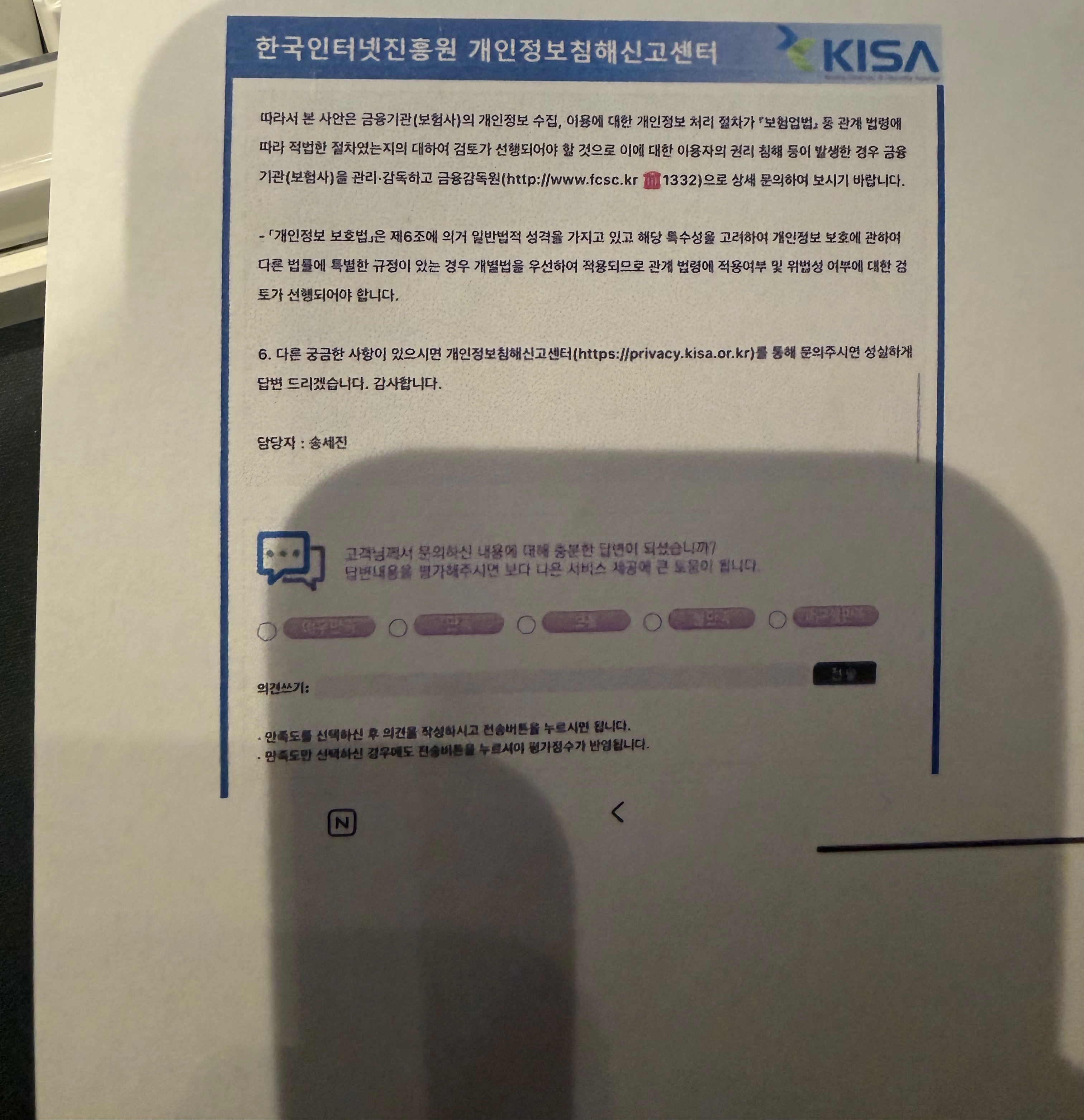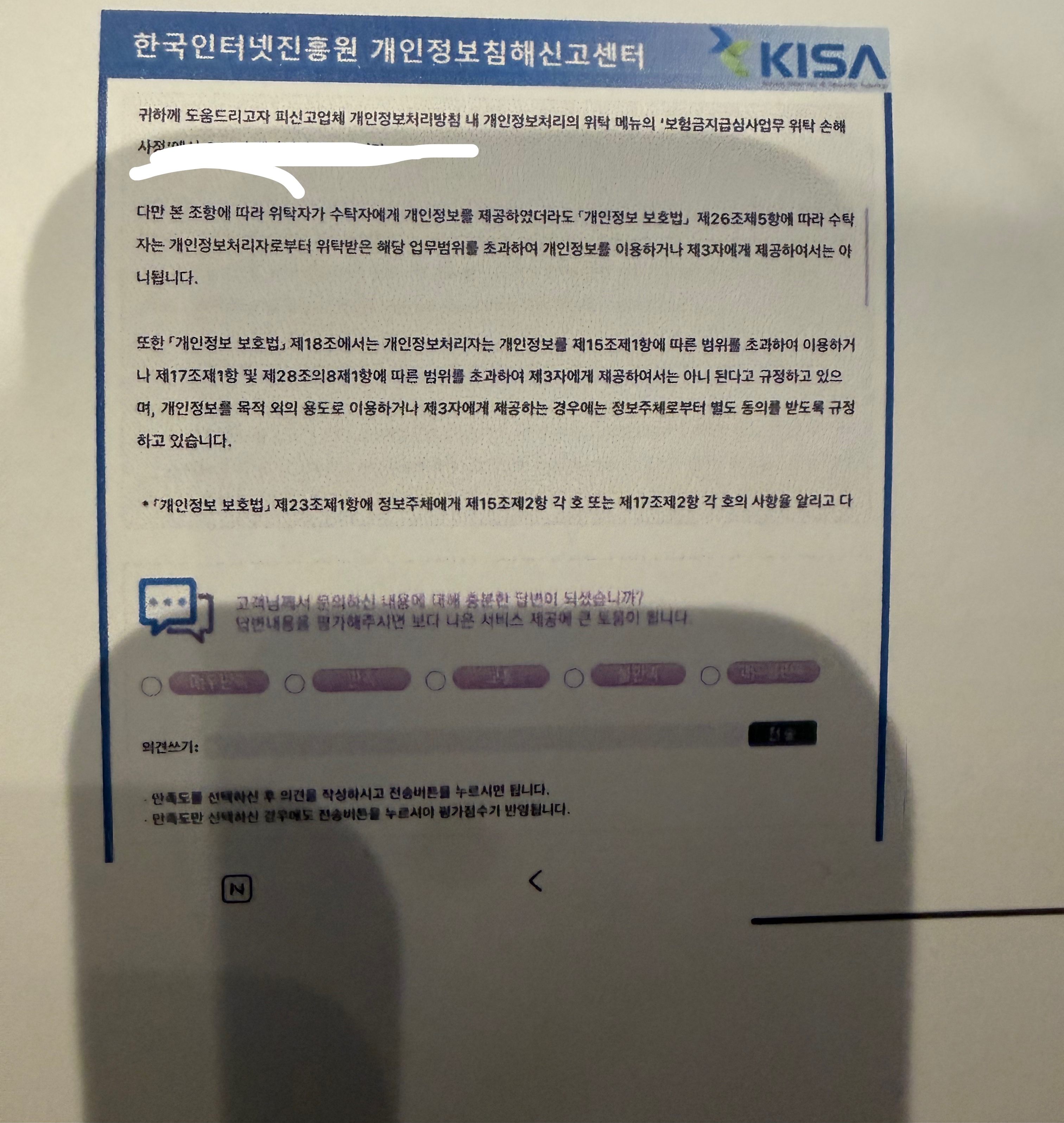 KISA¿¡ Á÷Á¢ ¹®ÀÇÇØ¼ °³ÀÎÁ¤º¸º¸È£¹ý À§¹ÝÀÎÁö ¾Æ´ÑÁö ¹°¾îº¸´Ï