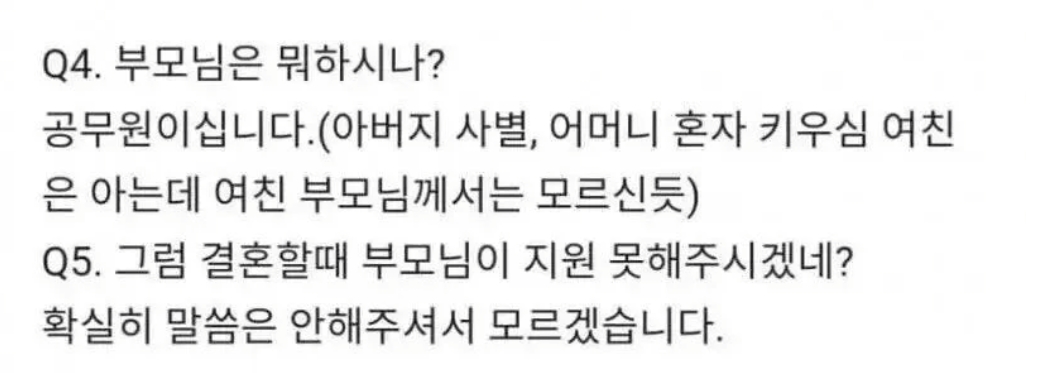°áÈ¥ ÀüÁ¦·Î ¸¸³ª´Â°Å°í ±×·± À̾߱Ⱑ ¿À°í°¡´Â »óȲÀ̸é ÃæºÐÈ÷ ¹°¾îº¼¸¸ÇÑ Áú¹®Àε¥ °áÈ¥ »ý°¢ ÇØº»Àûµµ ¾ø°í ±×³É ÀÏ´Ü ¿¬¾ÖÇϴ°ǵ¥ 20´ë¿¡ Àú·± Áú¹® µéÀ¸¸é ¿¨? ½Í±ä ÇÔ ³ª´Â 20´ë Á߹ݿ¡ ¸¸³ª´ø ¿©ÀÚÄ£±¸ ºÎ¸ð´Ô ¾î¼´Ù ºÈ Àû Àִµ¥ Àú·± ºñ½ÁÇÑ Áú¹®µé Çϼż ¾öû ´çȲ½º·¯¿ü°Åµç ¹º ±×³É ¿¬¾ÖÇϴ°ǵ¥ Àú·± °É ¹¯Áö ½Í°í.. ù Áú¹®µéÀÌ ´ëÇÐ ¾îµð³ª¿Ô³Ä ¾ó¸¶¸ð¾Ò³Ä ºÎ¸ð´Ô ¹¹ÇÏ½Ã³Ä Àç»êÀº Á» ÀÖÀ¸½Ã³Ä ÀÌ·± Áú¹®µéÀÌ µÇ°Ô º°·Î¿´À½