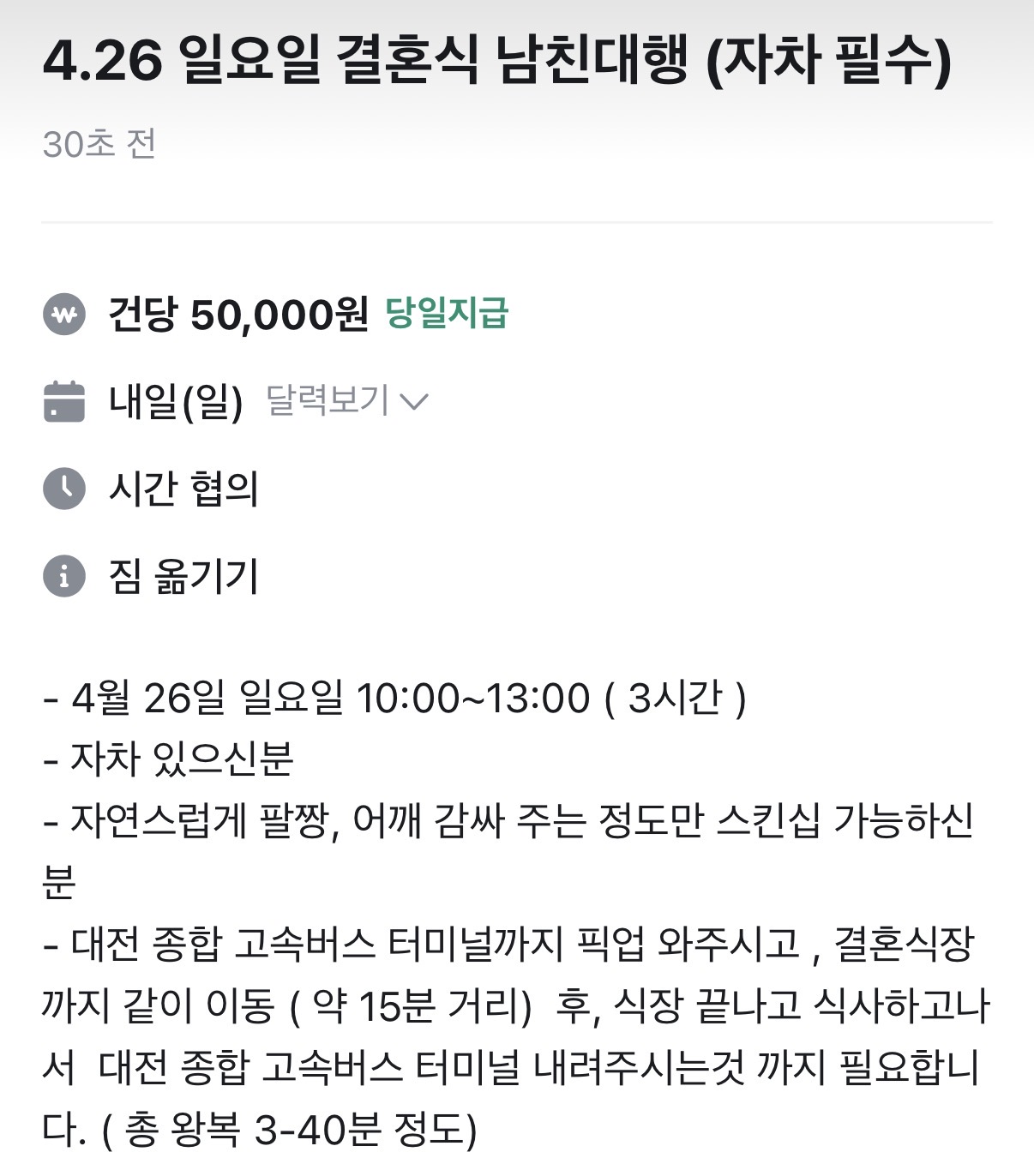 ÀÚÂ÷ »ç¿ë+¿Õº¹ ÇȾ÷+ÃÑ3½Ã°£Àε¥ 5¸¸¿øÀº °áÈ¥½Ä ºÎÆä Æ÷ÇÔÀÌ¶óµµ »ó´çÈ÷ °³³ä »¨Àº....... 20¸¸¿øÀº Áà¾ßÁö..
