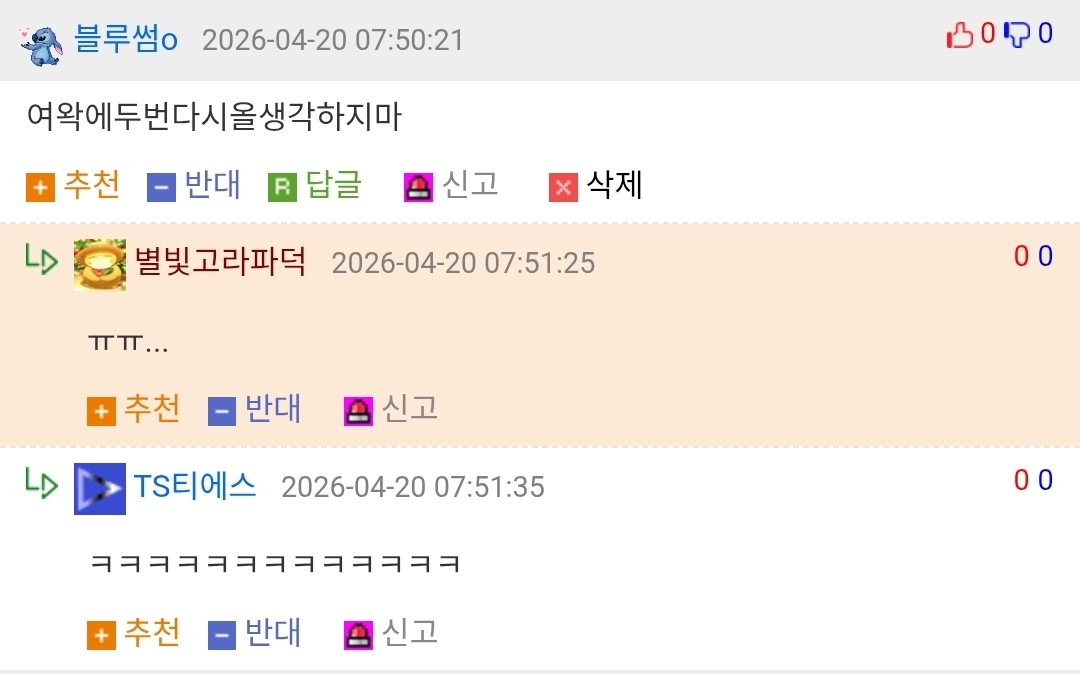 »ó´ë¹æ¿¡ ´ëÇÑ ¹è·Á´Â ³×ƼÄÏÀÇ ±âº»ÀÔ´Ï´Ù.°Ô½Ã¹°¿¡ »ó°ü¾ø´Â ´ä±ÛÀ̳ª ÃßõÀ¯µµ¼º ´ä±ÛÀ» ´ÞÁö ¸¶¼¼¿ä.