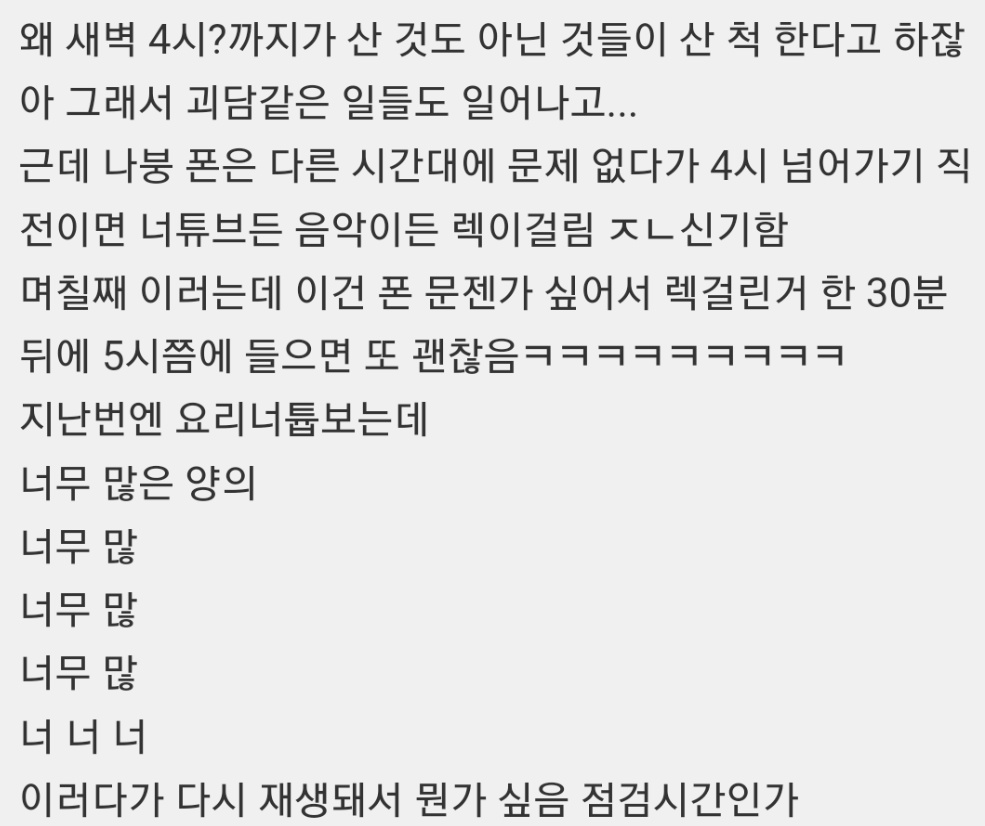 ȥ Ҷ ʹ ܷӰ ϴϱ Ʈ Ʃ ѳ ڰߴµ Ϸ ׳ . ڿ Ʈ µ Ʃ ڴµ ں " ִ° ƿ." 縦 ڸ Ҹ Ƽ ׳ Ѱ .