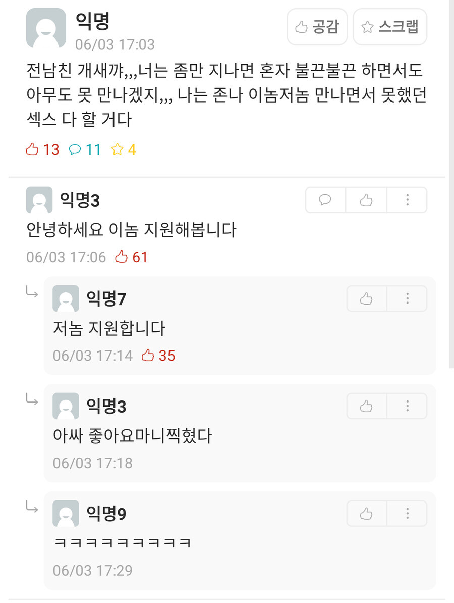 »ó´ë¹æ¿¡ ´ëÇÑ ¹è·Á´Â ³×ƼÄÏÀÇ ±âº»ÀÔ´Ï´Ù.°Ô½Ã¹°¿¡ »ó°ü¾ø´Â ´ä±ÛÀ̳ª ÃßõÀ¯µµ¼º ´ä±ÛÀ» ´ÞÁö ¸¶¼¼¿ä.