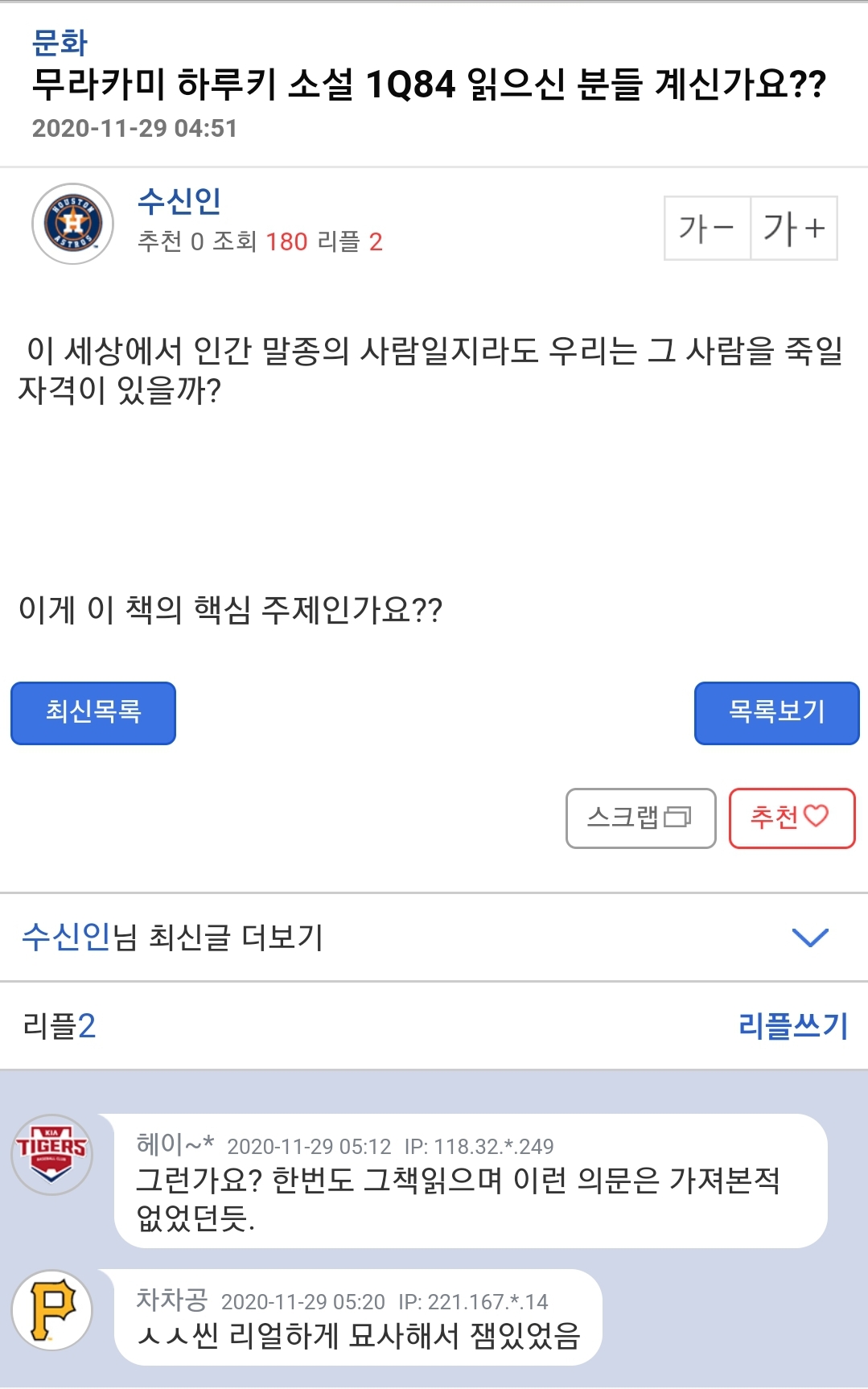 ³ª Áö±Ý±îÁöµµ IQ84ÀÎÁÙ ¾Ë¾Ò.....¾î.... ¤§¤§¤§¤§