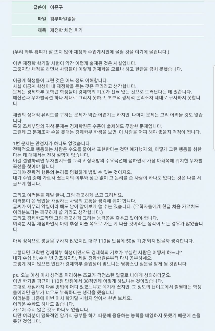 ¾Æ´Ï ±Û ÀÐ°í³ª¼ ¾ó¸¶³ª ÇлýµéÀÌ °øºÎ¾ÈÇßÀ¸¸é.... ÇÏ°í ½ºÅ©·Ñ ¿Ã·Á¼ ÀÛ¼ºÀÚ ºÃ´Âµ¥.... ¿ì¸®³ª¶ó °æÁ¦ÇÐ ¼®ÇÐ ¼Õ°¡¶ô¿¡ ²Å´Â ¼¿ï´ë °æÁ¦ÇÐ ±³¼ö ÀÌÁر¸³×.... ±Û¾´ÀÌ º» ÈÄ °íÀι°ÀÌ Çкλýµé ´É¿åÇÑ´Ù°í¹Û¿¡ ¸ø´À³¦..