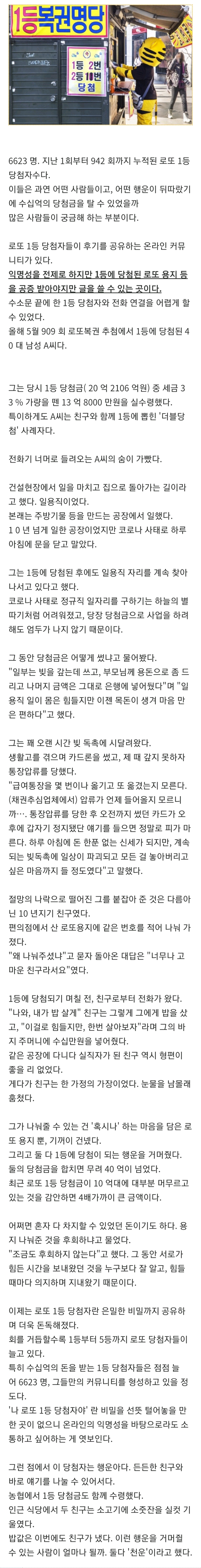 ¿Í ¸î³â ÀÌ¿Í ºñ½ÁÇÑ »óȲÀε¥ 1µî µÈ ÀÏ¿ë³ëµ¿ÀÚ°¡ 1¾ïÀΰ¡ °°ÀÌ °í»ýÇÑ Çü¿¡°Ô ÁÙ·Á°í ¸»Çߴµ¥ ¿ëÁö °¡Áö°í Æ¢´Ù°¡ °É¸° ±× ½ºÅ丮 »ý°¢³ª³×