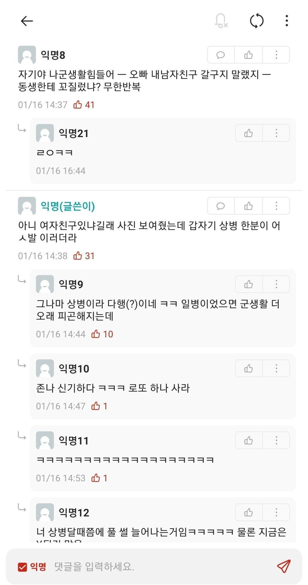 »ó´ë¹æ¿¡ ´ëÇÑ ¹è·Á´Â ³×ƼÄÏÀÇ ±âº»ÀÔ´Ï´Ù.°Ô½Ã¹°¿¡ »ó°ü¾ø´Â ´ä±ÛÀ̳ª ÃßõÀ¯µµ¼º ´ä±ÛÀ» ´ÞÁö ¸¶¼¼¿ä.