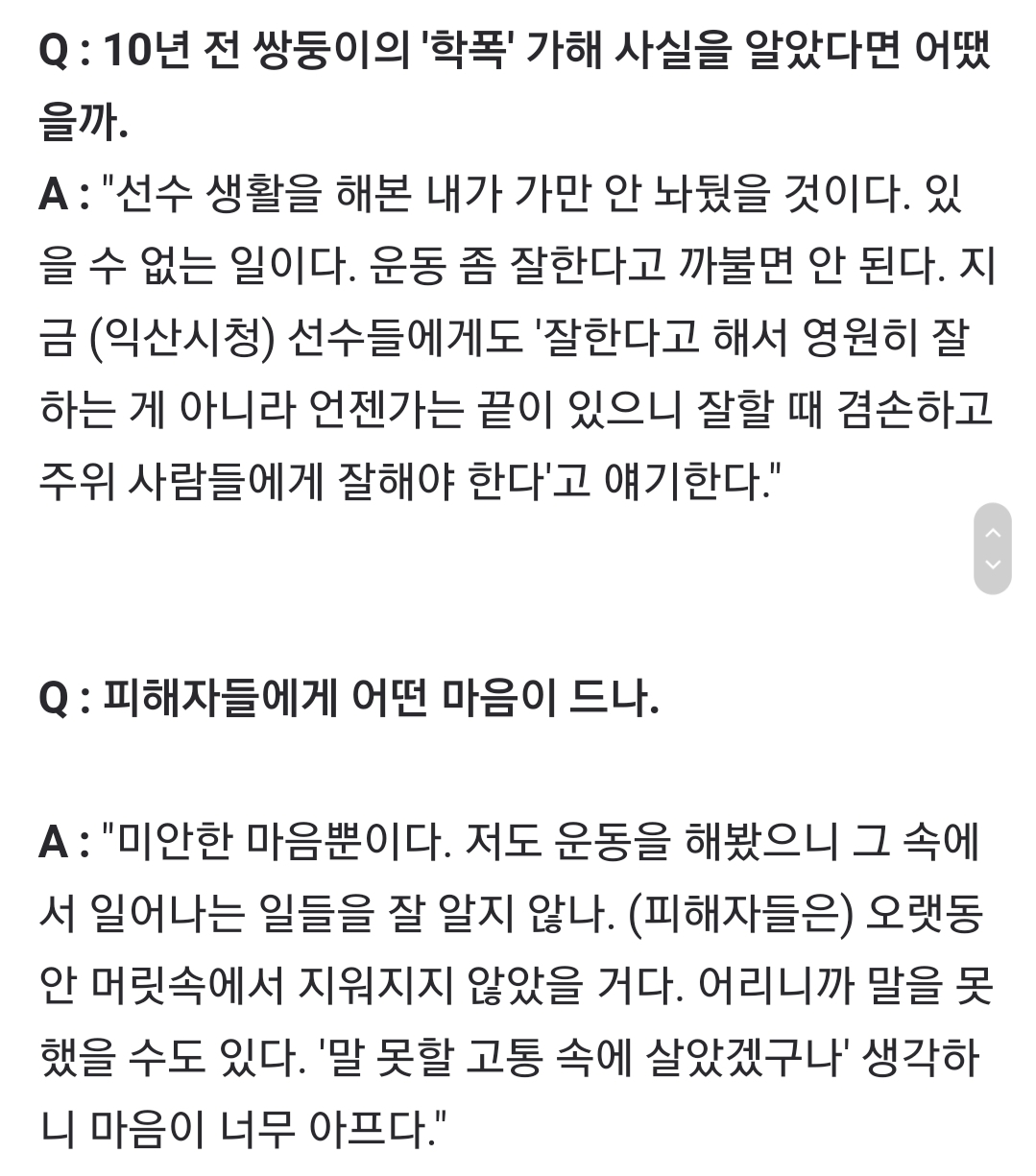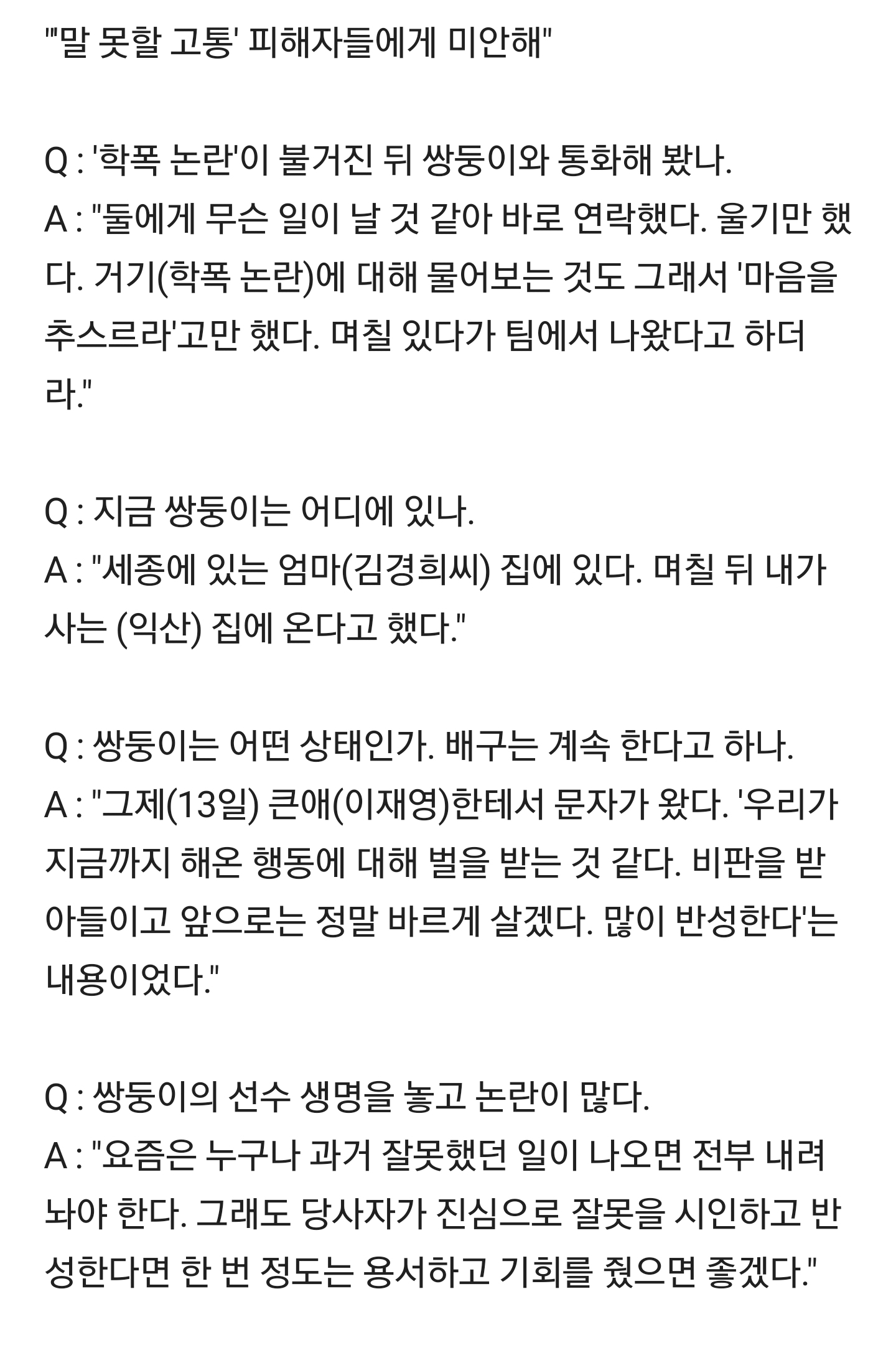 °³ÀÎÀûÀ¸·Î ÀÌ »ç°ÇÀº ¹è±¸ Çùȸ°¡ ¡°è¸¦ ³»¸± »ç°ÇÀ̶ó±â º¸´Ü Çü»çó¹ú ¹Þ¾Æ¾ßÇÒ »ç°ÇÀ̾ú´Ù°í »ý°¢ÇÔ ÇÐÆøÀÌ ¹è±¸°è³ª ¿îµ¿¼±¼ö¿¡¸¸ ƯÁ¤µÇ´Â ¹üÁ˰¡ ¾Æ´Ñ¸¸Å '¹è±¸ ¼±¼ö' ·Î¼ ¡°è¹Þ±âº¸´Ü '¹üÁËÀÚ'·Î¼ ó¹ú¹Þ¾Æ¾ß ÇÑ´Ù°í º½ [1]
