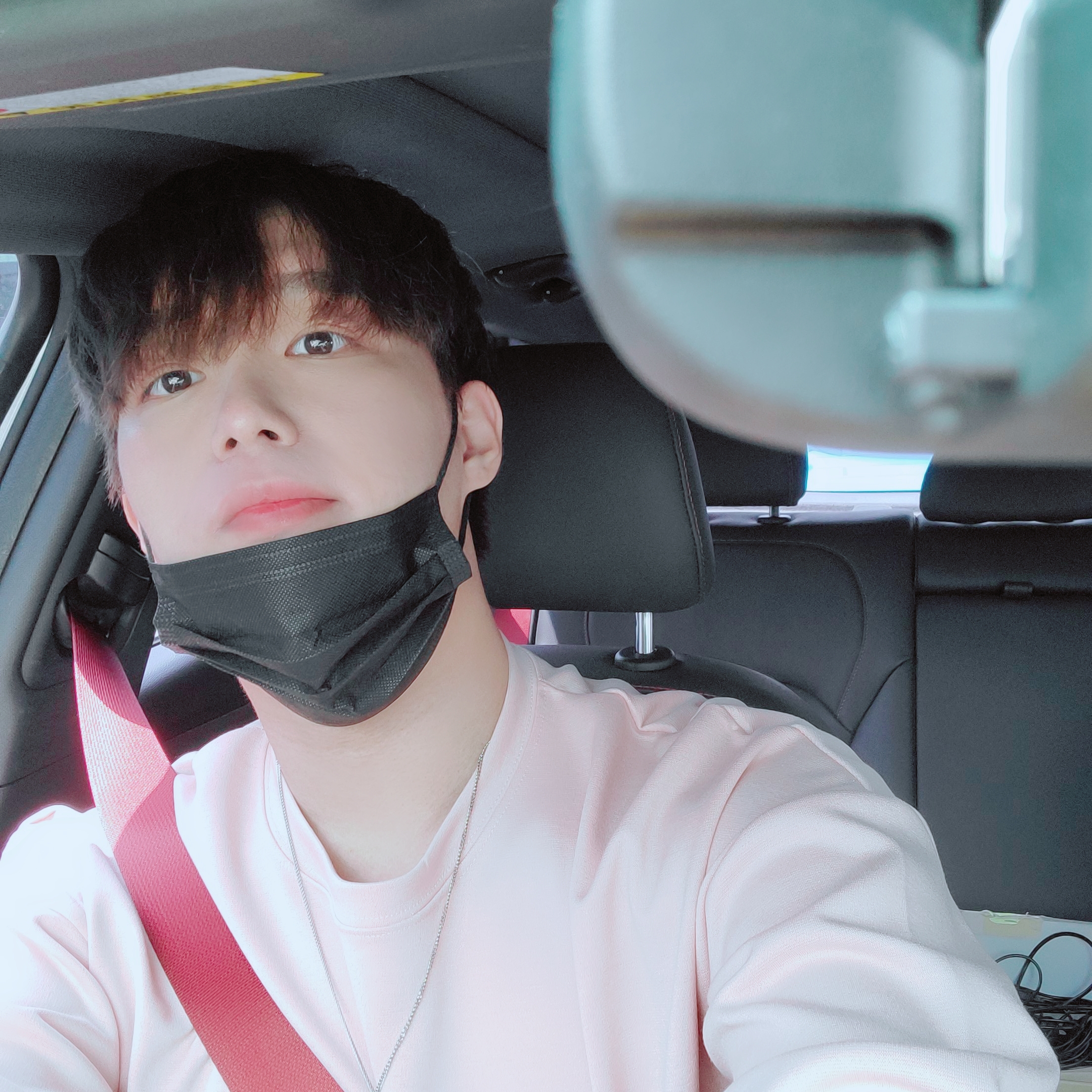 a boy taking a selfie in a car