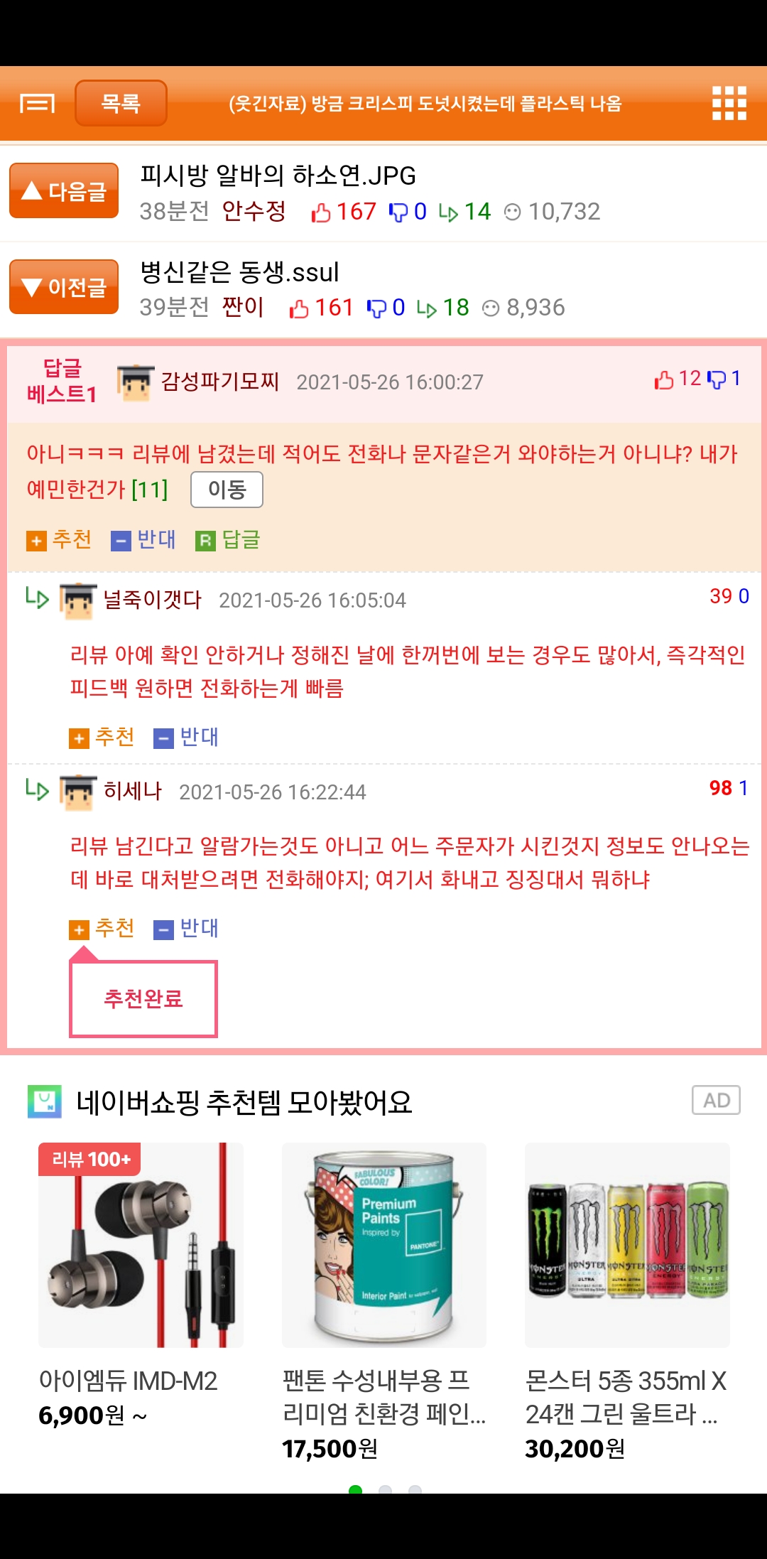 ½Äǰ¿¡ À̹° µé¾î°£ °æ¿ì¿¡´Â ÀüÈÇØ¼ ȯºÒ ¹ÞÀ¸¼¼¿ä ¤Ð¤Ð... ±×°Å ¼·ÃëÇϼ̰ųª ÀÌ ´ÙÃÆÀ» ¶§ »ý°¢ÇؾßÇØ¿ä. ÂøÇÏ°Ô ³Ñ¾î°¡´Â °Íµµ ÁÁÁö¸¸, ±× ±úÁø Á¶°¢ÀÌ ´Ù¸¥ µµ³Ó¿¡µµ µé¾î°¬À» ¼ö ÀÖÀ¸´Ï±î Á¦´ë·Î »ç°ú¹Þ°í ȯºÒÁ¶Ä¡¸¸ ÇØµµ ¾÷üÂÊ¿¡¼ È®ÀÎÀ» ÇÒ°Å¿¹¿ä! Àúµµ ½Äǰ ÆÇ¸ÅÇϴ ȸ»ç¿¡¼ ÀÏÇÏÁö¸¸, À̹°ÀÌ »ý±â´Â °Ç ¾î¿ ¼ö ¾ø°í ±× À̹°¿¡ ´ëÇÑ Ã¥ÀÓÀº Á¦Á¶»çµç ¾÷üµç ²À Á®¾ßÇÑ´Ù´Â ¸¶ÀεåÀÔ´Ï´Ù. ´ÙÀ½¿£ ³Ê¹« °ÆÁ¤ÇÏÁö¸¶½Ã°í ÀüÈ·Î ¿¬¶ôÇØ¼ À̹°Áú »çÁø, ´ç½Ã »óȲ Á¤µµ ¼³¸íÇϰí ȯºÒ Á¤µµ´Â ¹ÞÀ¸¼Å¿ä!!
