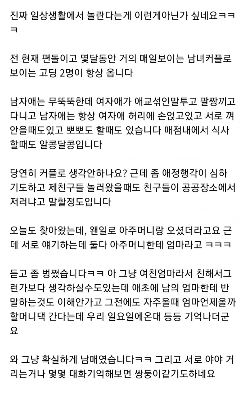 Ä£±¸Áß¿¡ µü ÇѸí Àڱ⠴©³ª¶û Ä£ÇÏ°Ô Áö³»´Â ¾Ö°¡ ÀÖ±ä ÇÔ ±Ùµ¥ °Ã ´©³ª¶û 3»ìÀΰ¡ 4»ìÂ÷ÀÌ°í ´ëÈÇϴ°Šº¸¸é Ä£ÇÑ À̸ð¿Í Á¶Ä« ´À³¦ÀÓ ÀúÁ¤µ· ¾Æ´Ñµí