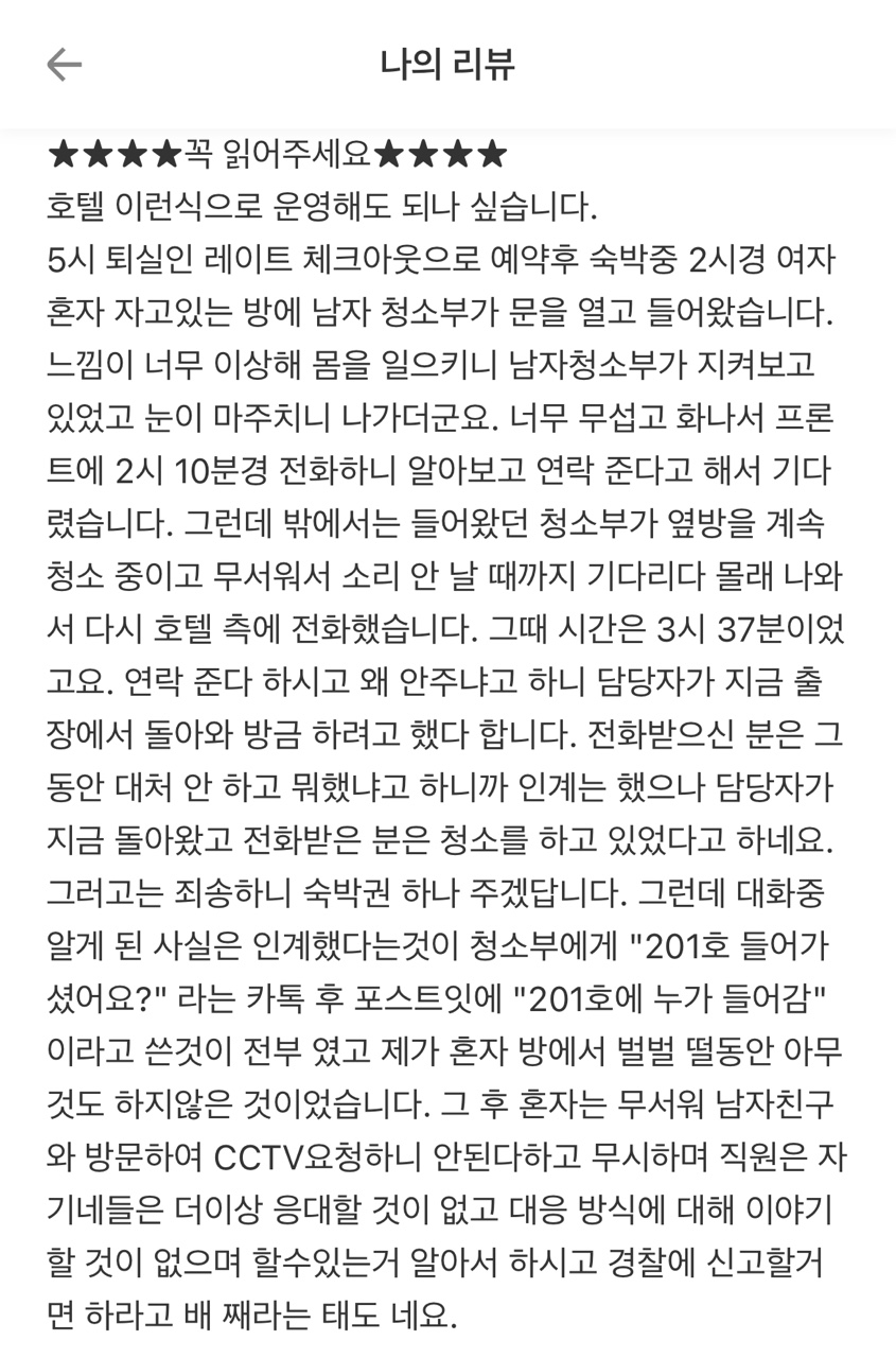 ȣ 忡 Ẹ ڰ Դٰ øŰ ȣ ¿ ִ ŵ ȣ մԹ濡 ûҺΰ ̰ ڹ濡 ڰ Դ ̴ ȣ ͵, ó ȭ °͵ ذ ˴ϴ. ȣ ذϴ. Ǽߴٰ Į ̹и ģϰ ϱ ̴ϴ. 뵿ϰ cctvȮ ûҺ Բ öԾϴ ϴ.