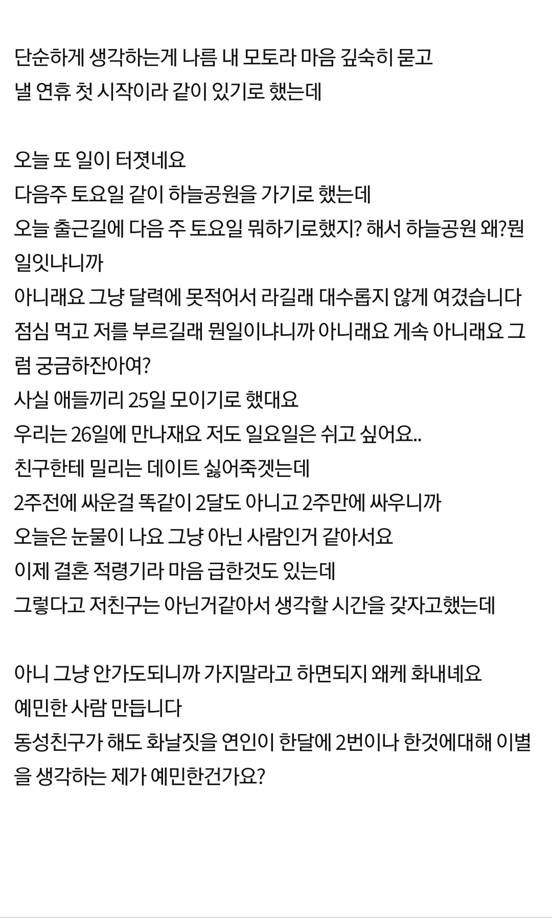 °í¹ÎÀε¥ ´©±¸ÇÑÅ×µµ ¸»À» ¸øÇϰí Àֳ׿ä Ä£±¸ÇÑÅ× Åоî³õÀ¸¸é Çì¾îÁö¶õ ´ë´äÀ» µè°í ½ÍÀº°Å°í ³²Ä£ÇÑÅ× ¾ê±âÇÏ¸é ¿ä±¸°¡ µÇ°ÚÁÒ ±×·±µ¥ Á¦°¡ ¿øÇÏ´Â°Ç ¿¬¶ôÀ» ´õ ÀÚÁÖÇϰí ÀÏÁ¤ º¸°íÇÏ´Â°É ¿øÇÏ´Â°Ô ¾Æ´Ï°Åµç¿ä.. ¾ïÁö·Î Ʋ¿¡ ³¢¿ö¸ÂÃß°í ½ÍÁö ¾Ê¾Æ¿ä ±âºÐÀÌ ÀÌ»óÇѵ¥ ³»°¡ ¹» ÇÏ°í ½ÍÀºÁö ¸ð¸£°Ú°í ´ä´äÇϳ׿ä