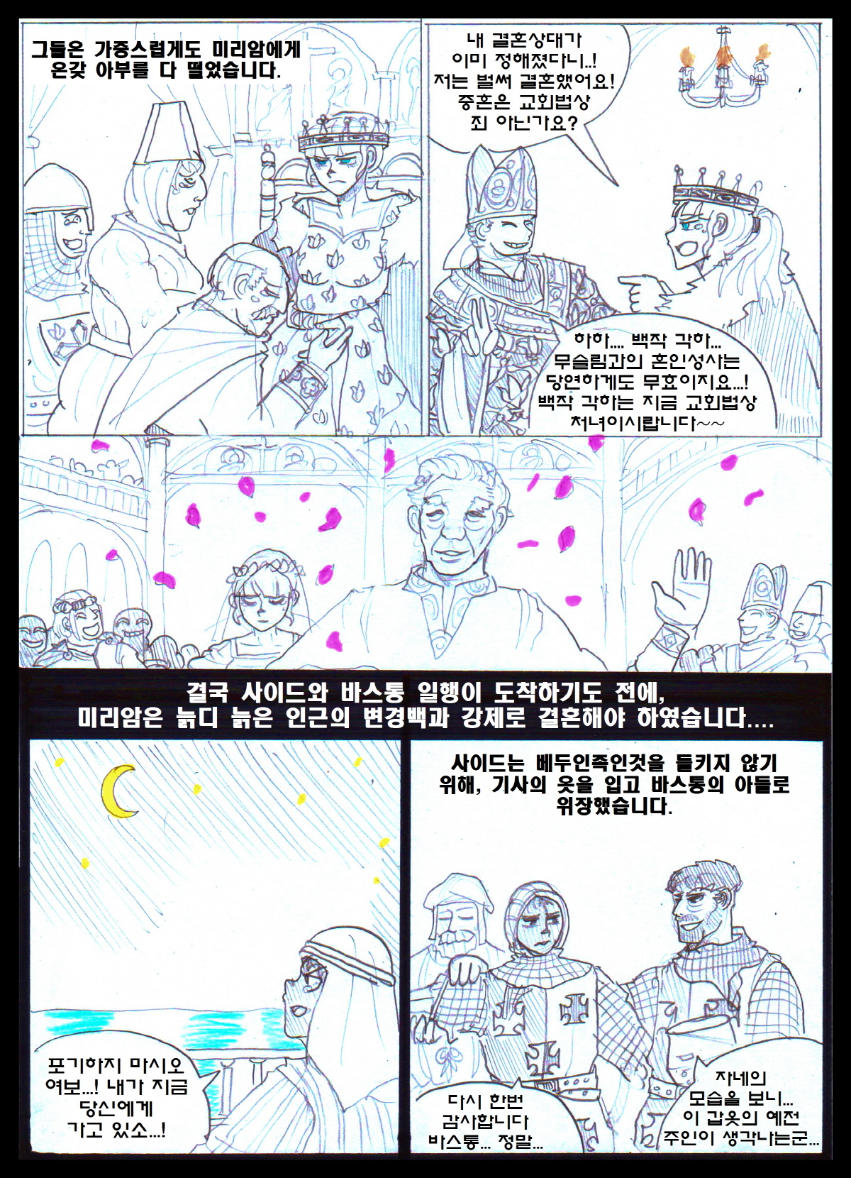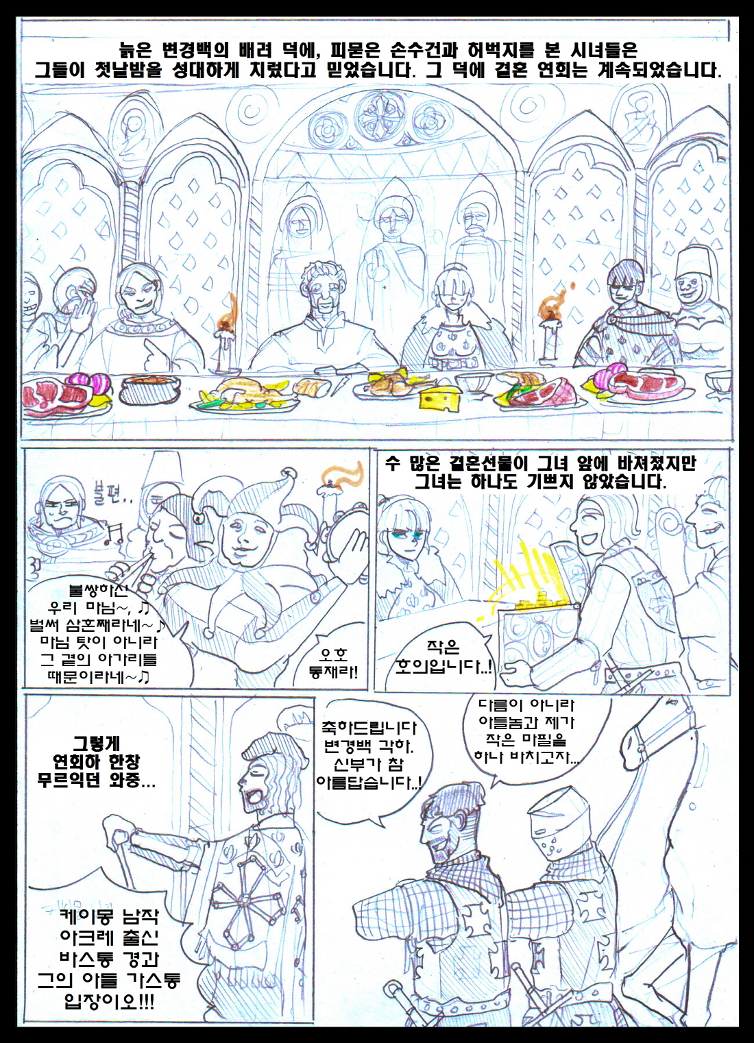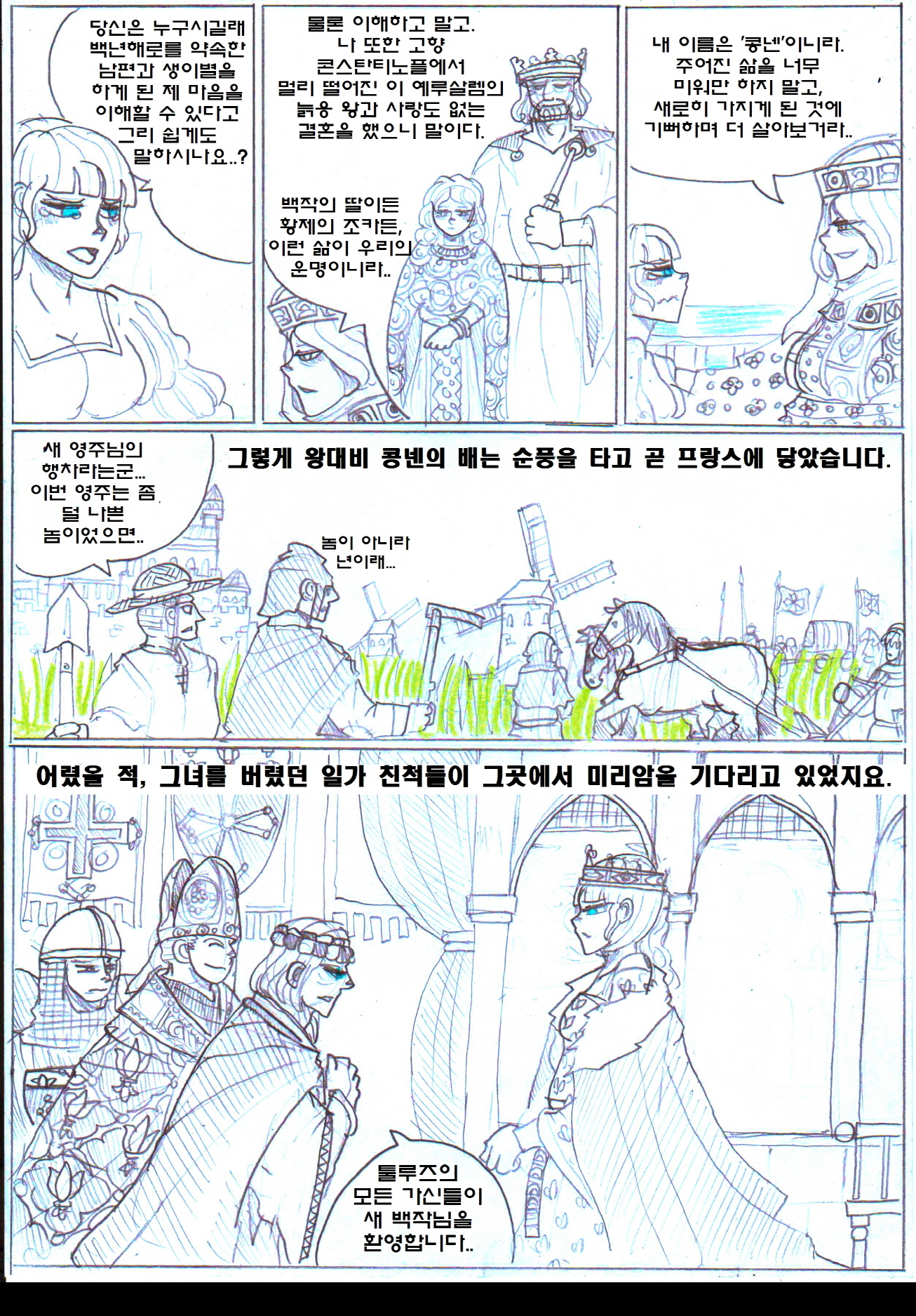 1. ¹Ì¸®¾ÏÀ» Åø·çÁî±îÁö µ¥·Á´Ù ³õÀº ¿Õ´ëºñ 'Äá³Ù'Àº À̺§¸°ÀÇ ¹ß¸®¾ÓÀÇ ¾Æ³»ÀÌÀÚ, µ¿·Î¸¶Á¦±¹ 'Ä޴ϳ뽺 Ȳ°¡'ÀÇ ¿©½ÄÀÎ ¸¶¸®¾Æ ÄÞ´Ï´ÏÀÔ´Ï´Ù. 'ÄÞ´Ï´Ï'¶ó´Â ¹ßÀ½À» Á¦´ë·Î ¸øÇÑ ÇÁ¶û½ºÀεéÀÌ 'Äá³Ù'À̶ó´Â ±Í¿©¿î ¼ºÀ¸·Î ¹Ù²ã¹ö¸°°ÍÀÌÁö¿ä. ±×³à¶ÇÇÑ ¼ö Â÷·ÊÀÇ »ç¶û ¾ø´Â Á¤·«°áÈ¥À» °ÅÃÆ°í, ÀÌÈÄ ÀÚ½ÅÀÇ µþµé±îÁö ÀÌÈ¥½ÃŰ°í ´Ù¸¥ À¯·ÂÀÚµé°ú °áÈ¥½ÃųÁ¤µµ·Î ³ÃÃ¶ÇØÁ³½À´Ï´Ù. ¾Æ¸¶ ±×·± »îÀ» °Ý¾îº¸¾ÒÀ¸´Ï ¹Ì¸®¾ÏÀ» ºÒ½ÖÇÏ°Ô ¿©°å°ÚÁö¿ä. 2. Åø·çÁî·Î ³Ñ¾î°£ ÀÌÈÄ´Â »çÀ̵尡 º¸´Â ÈÇü½ÄÀº '¾ËºñÆÄ'ÀÇ ¿©ÀÚ ¿Ï´öÀÚ¸¦ ºÒÅ¿ì´Â ¸ð½ÀÀÔ´Ï´Ù. Åø·çÁî´Â ±âµ¶±³ÀÇ ¾Æ·ùÀÎ '¾ËºñÆÄ'°¡ ¼ºÇàÇÏ´ø °÷À̰í, ÀÌÈÄ ¸î³â Áö³ªÁö ¾Ê¾Æ ¾ËºñÆÄ°¡ Åø·çÁî Àü¿ªÀ» Àå¾ÇÇÏ°Ô µÇ¾î '¾ËºñÆÄ ½ÊÀÚ±º'ÀÌ ½ÃÀ۵Ǵ °è±â¸¦ Á¦°øÇÕ´Ï´Ù. 3. ¸¶Áö¸·¿¡ Äܶóµå ¿ÕÀÌ ¾Æ»ç½Å¿¡°Ô ¾Ï»ì´çÇÏ´Â °ÍÀº °í-ÁõÀÔ´Ï´Ù. ±×³¯µû¶ó Áý¹äÀÌ ¸Ô°í½ÍÁö ¾Ê¾Ò´ø Äܶóµå´Â Ä£±¸ÀÎ ÁÖ±³³× Áý¿¡ ¹äÀ» ¾ò¾î¸ÔÀ¸·¯ °¬´Âµ¥, ÀÌ¹Ì ÁÖ±³°¡ ¹äÀ» ¸ÔÀº ¹Ù¶÷¿¡, ¾î¶»°Ô ³¢´Ï¸¦ ¶§¿ïÁö °í¹ÎÇÏ´ø Âû³ª µÎ ¸íÀÇ ¾Æ»ç½ÅÀ» ¸¸³ª ¾Ï»ì´çÇß½À´Ï´Ù.