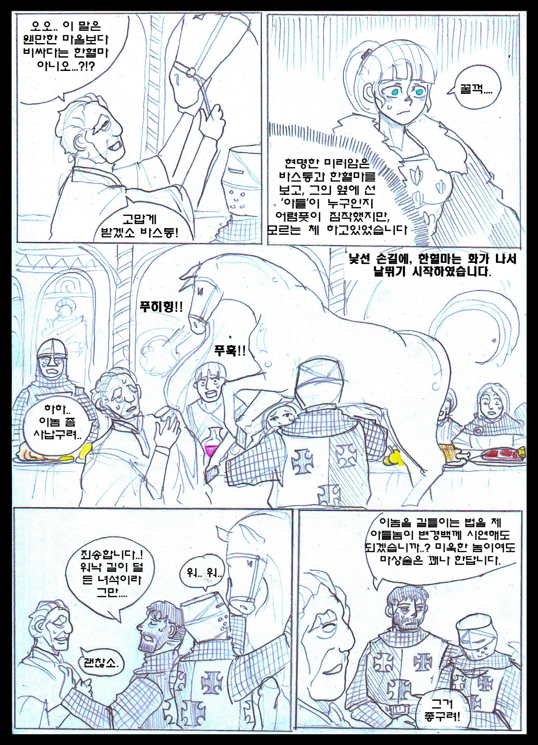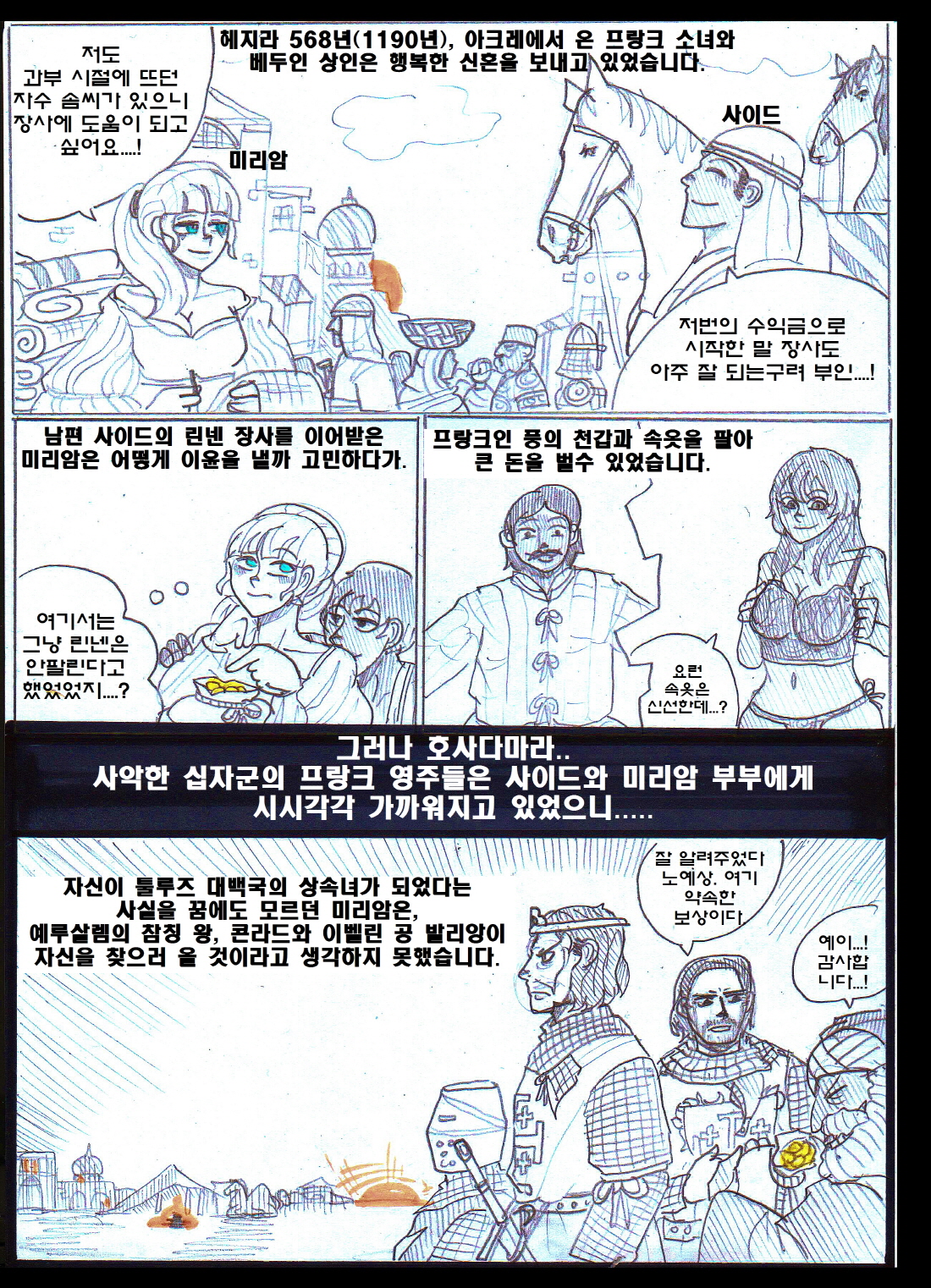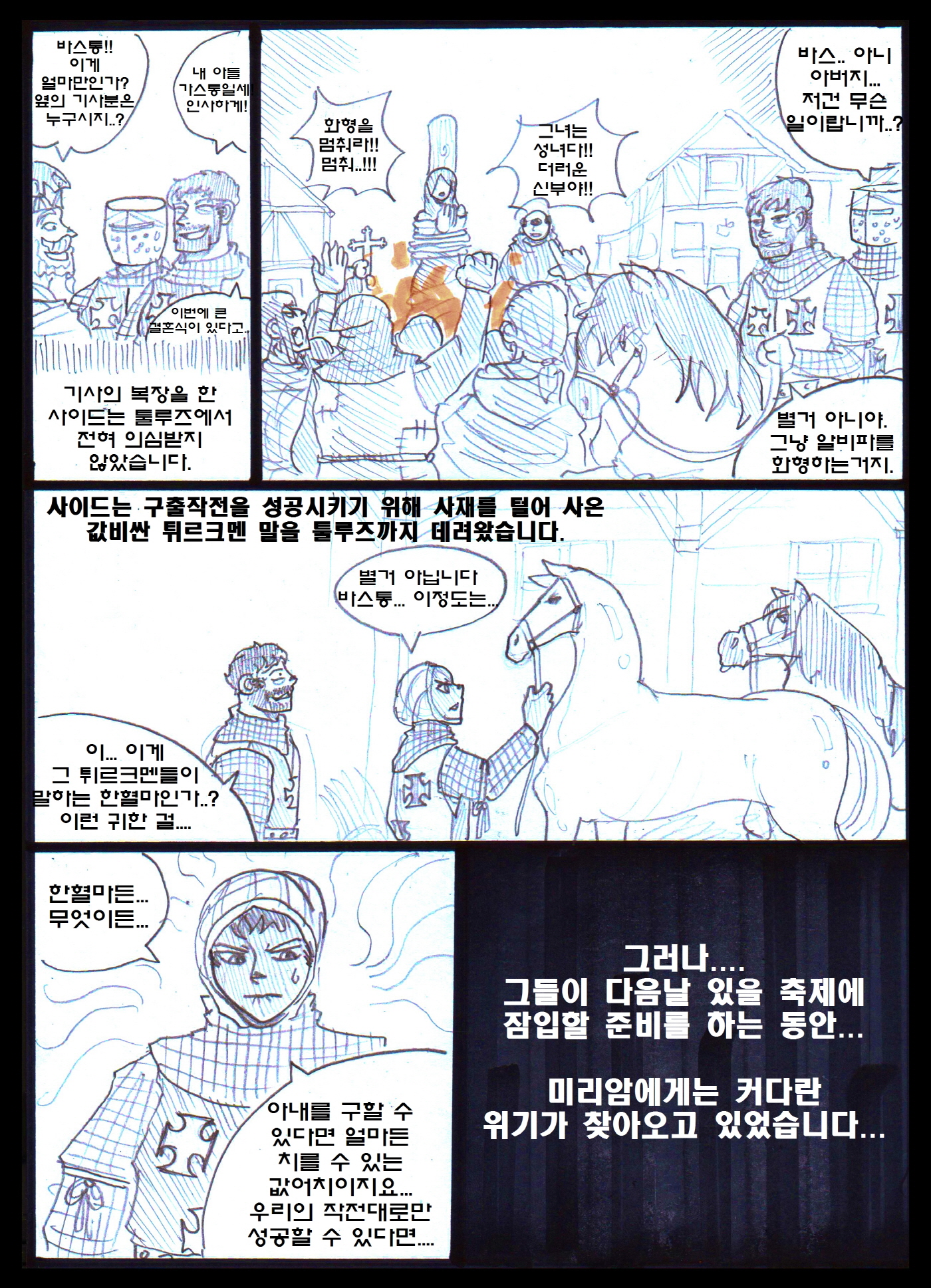 1. ¹Ì¸®¾ÏÀ» Åø·çÁî±îÁö µ¥·Á´Ù ³õÀº ¿Õ´ëºñ 'Äá³Ù'Àº À̺§¸°ÀÇ ¹ß¸®¾ÓÀÇ ¾Æ³»ÀÌÀÚ, µ¿·Î¸¶Á¦±¹ 'Ä޴ϳ뽺 Ȳ°¡'ÀÇ ¿©½ÄÀÎ ¸¶¸®¾Æ ÄÞ´Ï´ÏÀÔ´Ï´Ù. 'ÄÞ´Ï´Ï'¶ó´Â ¹ßÀ½À» Á¦´ë·Î ¸øÇÑ ÇÁ¶û½ºÀεéÀÌ 'Äá³Ù'À̶ó´Â ±Í¿©¿î ¼ºÀ¸·Î ¹Ù²ã¹ö¸°°ÍÀÌÁö¿ä. ±×³à¶ÇÇÑ ¼ö Â÷·ÊÀÇ »ç¶û ¾ø´Â Á¤·«°áÈ¥À» °ÅÃÆ°í, ÀÌÈÄ ÀÚ½ÅÀÇ µþµé±îÁö ÀÌÈ¥½ÃŰ°í ´Ù¸¥ À¯·ÂÀÚµé°ú °áÈ¥½ÃųÁ¤µµ·Î ³ÃÃ¶ÇØÁ³½À´Ï´Ù. ¾Æ¸¶ ±×·± »îÀ» °Ý¾îº¸¾ÒÀ¸´Ï ¹Ì¸®¾ÏÀ» ºÒ½ÖÇÏ°Ô ¿©°å°ÚÁö¿ä. 2. Åø·çÁî·Î ³Ñ¾î°£ ÀÌÈÄ´Â »çÀ̵尡 º¸´Â ÈÇü½ÄÀº '¾ËºñÆÄ'ÀÇ ¿©ÀÚ ¿Ï´öÀÚ¸¦ ºÒÅ¿ì´Â ¸ð½ÀÀÔ´Ï´Ù. Åø·çÁî´Â ±âµ¶±³ÀÇ ¾Æ·ùÀÎ '¾ËºñÆÄ'°¡ ¼ºÇàÇÏ´ø °÷À̰í, ÀÌÈÄ ¸î³â Áö³ªÁö ¾Ê¾Æ ¾ËºñÆÄ°¡ Åø·çÁî Àü¿ªÀ» Àå¾ÇÇÏ°Ô µÇ¾î '¾ËºñÆÄ ½ÊÀÚ±º'ÀÌ ½ÃÀ۵Ǵ °è±â¸¦ Á¦°øÇÕ´Ï´Ù. 3. ¸¶Áö¸·¿¡ Äܶóµå ¿ÕÀÌ ¾Æ»ç½Å¿¡°Ô ¾Ï»ì´çÇÏ´Â °ÍÀº °í-ÁõÀÔ´Ï´Ù. ±×³¯µû¶ó Áý¹äÀÌ ¸Ô°í½ÍÁö ¾Ê¾Ò´ø Äܶóµå´Â Ä£±¸ÀÎ ÁÖ±³³× Áý¿¡ ¹äÀ» ¾ò¾î¸ÔÀ¸·¯ °¬´Âµ¥, ÀÌ¹Ì ÁÖ±³°¡ ¹äÀ» ¸ÔÀº ¹Ù¶÷¿¡, ¾î¶»°Ô ³¢´Ï¸¦ ¶§¿ïÁö °í¹ÎÇÏ´ø Âû³ª µÎ ¸íÀÇ ¾Æ»ç½ÅÀ» ¸¸³ª ¾Ï»ì´çÇß½À´Ï´Ù.
