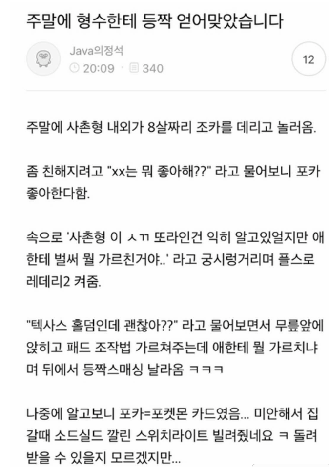 »çÃÌÇü: ±× ¿©º¸... ½ºÀ§Ä¡ µ¹·ÁÁà¾ß Çϴµ¥ ¿ì¸®¾Ö°¡ ¸øµ¹·ÁÁÖ°Ú´Ù°í ±×·¯´Âµ¥...... ±×.... ¿äÁò ½ºÀ§Ä¡¶û Æ÷ÄϸóÀÌ...