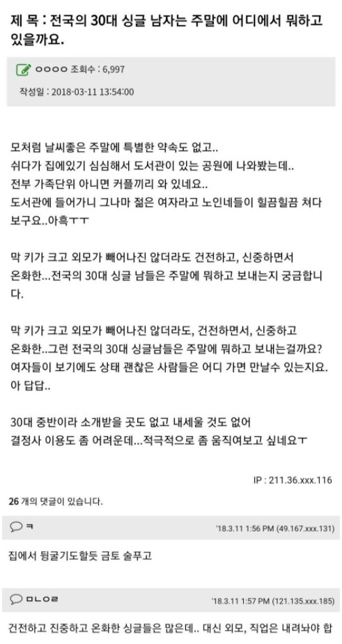 ±Ùµ¥ 30´ë ÀÌÈÄ¿¡ ³²ÀÚ´Â ¼¼»ó¿¡ Áñ±æ°Å¸®°¡ ³Ê¹« ¸¹À½¤»¤»´õÀÌ»ó ¿©ÀÚ¿¡ ¸ñ¸ÞÁö ¾Ê´Â°æ¿ì°¡ ¸¹Áö
