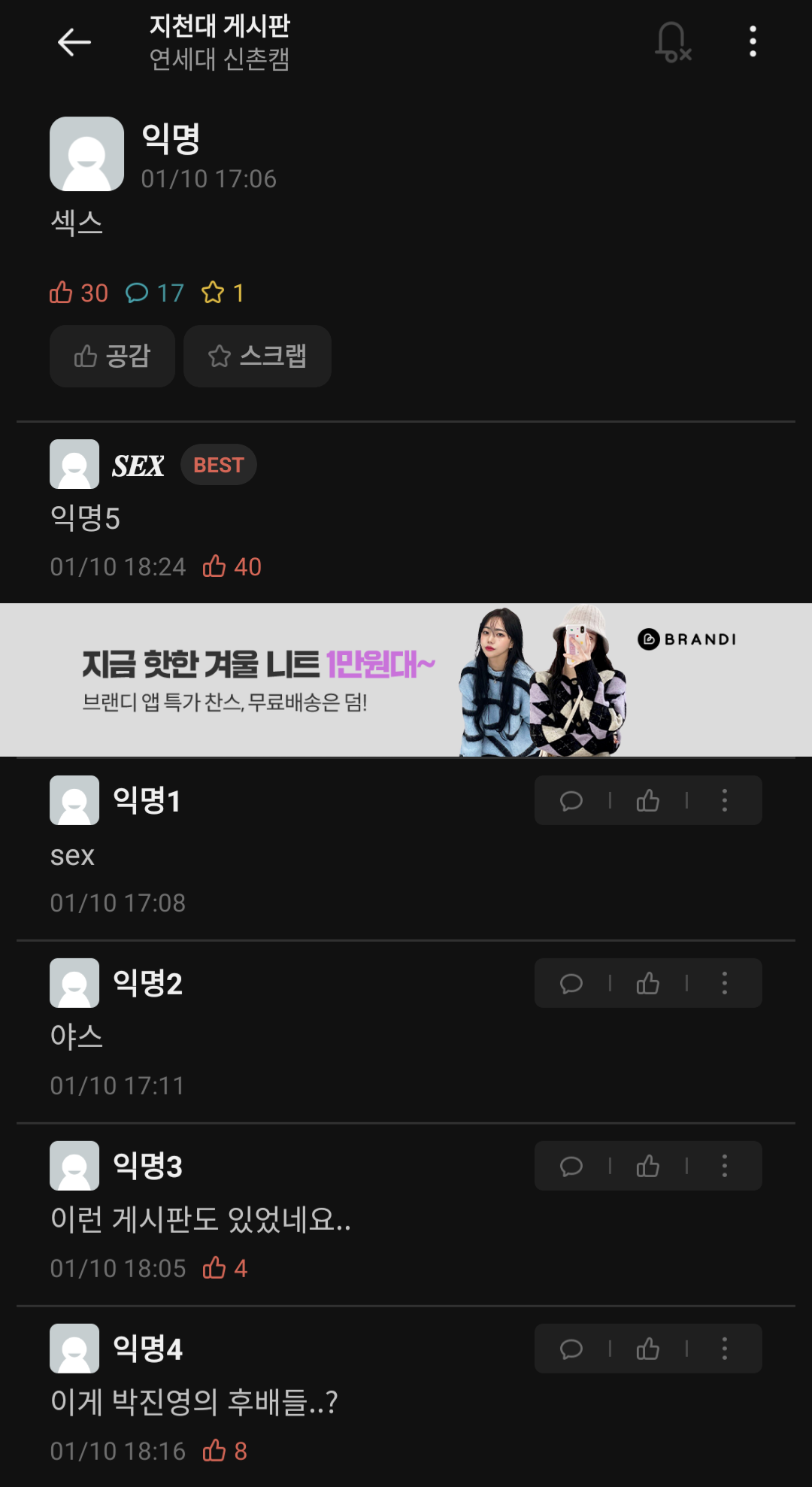 »ó´ë¹æ¿¡ ´ëÇÑ ¹è·Á´Â ³×ƼÄÏÀÇ ±âº»ÀÔ´Ï´Ù.°Ô½Ã¹°¿¡ »ó°ü¾ø´Â ´ä±ÛÀ̳ª ÃßõÀ¯µµ¼º ´ä±ÛÀ» ´ÞÁö ¸¶¼¼¿ä.