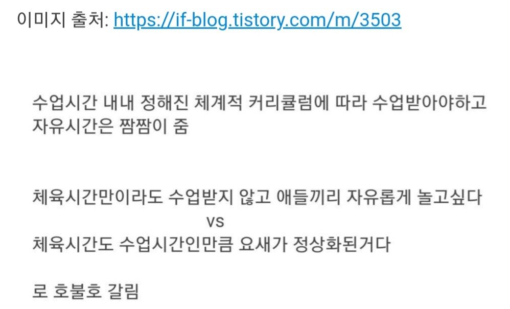 Á¤»óÈ­ ÇØ¾ßµÇ ÀÚÀ¯½Ã°£ ÁÖ¸é ¸ø³¢´Â ¾ÖµéÀÌ À־ ¸ðµÎ Âü¿©½ÃÄѾßÁö [4]