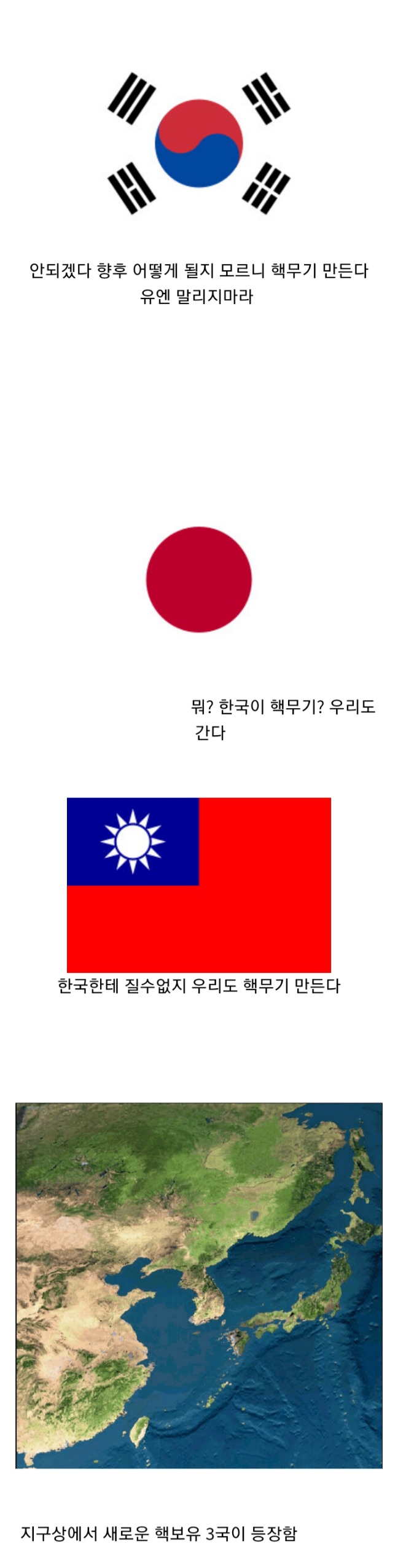 ´õ±º´Ù³ª ÇÙÈ®»ê±ÝÁöÁ¶¾à¿¡ °¡ÀÔµÈ ´ëÇѹα¹Àº 'ÇÙÀÇ À§ÇèÀ¸·Î ºÎÅÍ °ßÁ¦¸¦ Çϱâ À§ÇØ ÇÙÀ» °¡Áú ¼ö ÀÖ´Ù'´Â Á¶Ç׿¡µµ À̰ßÀÌ ¾ø´Â ³ª¶óÀ̱⿡ ¿¹¿ÜÀûÀ¸·Î ÇÙÀ» °¡Áú ¼ö ÀÖ½À´Ï´Ù. ÀϺ»Àº Àü¹ü±¹À¸·Î ¹æ¾î¿ë ¹Ì»çÀÏÀ» Á¦¿ÜÇϰí´Â ¹Ì»çÀÏÀ» ¸ø ¸¸µì´Ï´Ù. ÀÌ°Ç ¹Ì±¹ÀÌ Çã¿ëÇÏÁö ¾Ê½À´Ï´Ù. ÇÙÀº ¾ð°¨»ý½ÉÀÌÁÒ. ¸¶Âù°¡Áö·Î ´ë¸¸ÀÇ ±¹¹æ·Â°ú °æÁ¦, ¿Ü±³·ÂÀ¸·Î´Â ÇÙÀ» °¡Áú ¼ö ÀÖ´Â µ¢Ä¡´Â ¾ÈµÇ±â¿¡ ¹Ì±¹ÀÌ Çã¿ëÇÏÁö ¾ÊÀ»°Ì´Ï´Ù. ±×·¯¸é ¼±ÅÃÁö´Â ´ëÇѹα¹ ÇÑ ³ª¶ó ¹Û¿¡ ¾ø´Â°ÅÁÒ. ·¯½Ã¾Æ, Áß±¹, ºÏÇÑÀ» °ßÁ¦ÇÒ ¼ö ÀÖ´Â °æÁ¦¿Í ¿Ü±³, ±¹»ç·ÂÀ» º¸À¯Çϰí ÀÖÀ¸¸ç, ´Ü½Ã°£¿¡ ÇÙÀ» ¸¸µé ¼ö ÀÖ´Â ±â¼ú°ú ±× ÇÙÀ» ¹Ù·Î ½ñ¾Æ ¿Ã¸± ¼ö Àִ ÷´Ü ¹Ì»çÀϰú ÀüÅõ±â°¡ ÀÖ´Â ³ª¶ó¸ç, À§ 3°³ ±¹°¡¿¡ ÀÎÁ¢Çϰí ÀÖ¾î »çÁ¤±Ç¿¡ µé¾î¿À´Â ³ª¶ó´Â ´ëÇѹα¹ ¹Û¿¡ ¾ø½À´Ï´Ù. ´õ±º´Ù³ª ºÏÇѰú ÅëÀϱîÁö´Â ¾Æ´Ï´õ¶óµµ ´Ù°¡¿Ã ¹Ì·¡¿¡´Â Çù·Â ÇÒ °¡´É¼ºÀÌ ÀÖ½À´Ï´Ù. ¹Ì±¹ ÀÔÀå¿¡¼´Â ºÏÇÑ¿¡ Àü·«ÀÚ»êÀ» µÎ°í Áß±¹°ú ·¯½Ã¾Æ¸¦ °ßÁ¦ ÇÒ ¼ö ÀÖÀ¸´Ï ±Ý»ó÷ÈÀÔ´Ï´Ù. Á¶¸¸°£ Çѱ¹Àº Çٹ̻çÀÏÀ» ÀÚü »ý»ê ÇÒ ¼ö ÀÖÀ»°Ì´Ï´Ù.