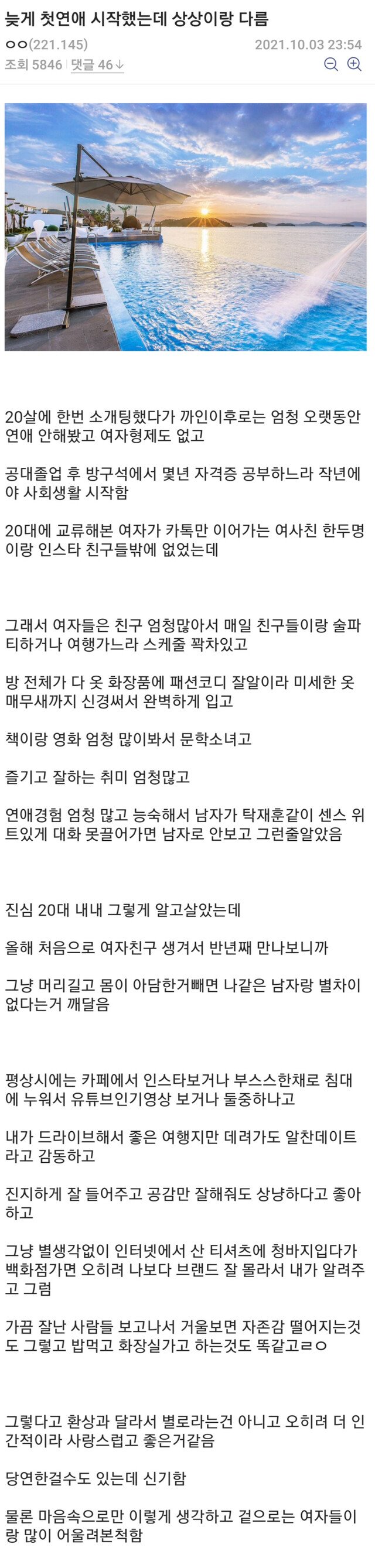 ³»°¡ ÁÁ¾ÆÇÑ´Ù´Â ±× »ç½ÇÀÌ ±× »ç¶÷¿¡°Ô »óó°¡ µÉ ¼ö ÀÖÀݾƿä... ¶ó´Â ¸»ÀÌ ÀÌ°É Á¤È®È÷ Ç¥ÇöÇÔ. º»ÀÎÀÌ ´©±º°¡¸¦ ÁÁ¾ÆÇÑ´Ù´Â »óȲ ÀÚü¸¦ ´ç»çÀÚ¸¦ Æ÷ÇÔÇÑ ´Ù¸¥ »ç¶÷µéÀÌ º°·Î ÁÁ¾ÆÇÏÁö ¾Ê´Â°É ¾Æ´Ï±î ±×³É ¼û°Ü¹ö¸®´Â°ÅÀÓ. ´ç¿¬È÷ ¼û±â´Â Àڽŵµ ÀÚÁ¸°¨¿¡ »óó¸¦ ¹Þ°Ô µÇ°í, ±×¿¡ ´ëÇÑ ¹æ¾î±âÁ¦·Î ³»¼¼¿ì´Â°Ô ¹Ù·Î ÀÌ ÀÚ½ÅÀÌ ÁÁ¾ÆÇÏ´ø ¿©ÀÚµéÀº »ç½Ç ³ª¿Í´Â ¾ÆÁÖ °ÝÀÌ ¸ÂÁö ¾Ê´Â´Ù´Â »ý°¢ÀÓ. ½Å°ÝÈ­Çϸé ÇÒ ¼ö·Ï ³ª´Â Á¤»óÀÌÁö¸¸, ±×³àµéÀÌ ³Ê¹« ³ô¾Ò±â¿¡ ³ª´Â ¾ê±âÇÏÁö ¾Ê´Â °ÍÀÌ´Ù¶ó°í ¾ÈÁÖÇÒ ¼ö ÀÖ°Ô µÊ. ÀÌ°Ô Á¦ ³úÇÇ¼È ÇØ¼®ÀÔ´Ï´Ù.
