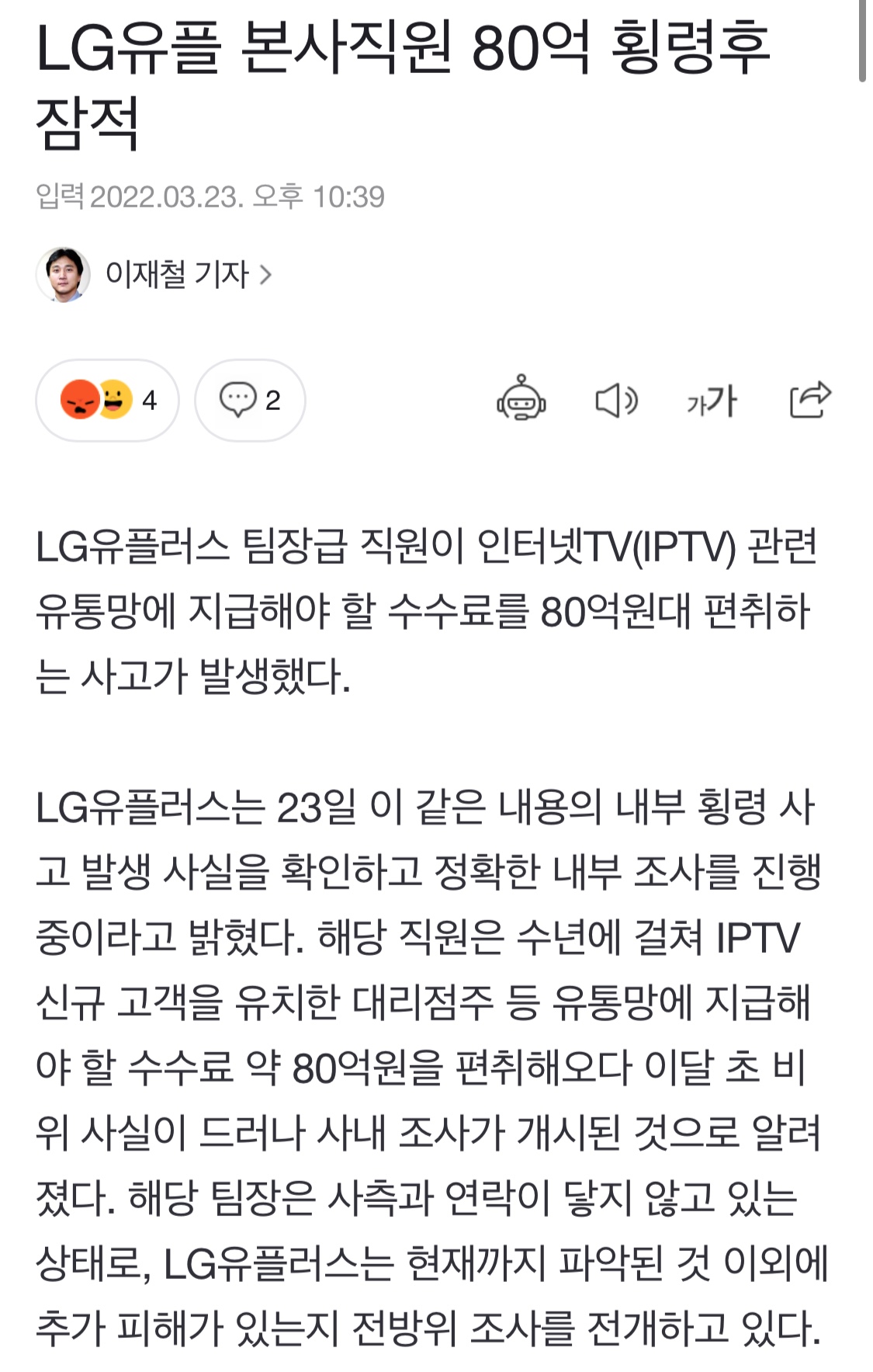 ÆíÃëÇÏ´Â »ç°í°¡ ¹ß»ýÇß´Ù°¡ ¾Æ´Ï¶ó ¹üÁ˰¡ ¹ß»ýÇß´Ù ¾Æ´Ô? ´©°¡º¸¸é ¸Û¶§¸®´Ù ½Ç¼ö·Î ÆÀÀå±Þ Á÷¿ø ÅëÀå¿¡ 80¾ï µ¥ÇìÇò µé¾î°£ÁÙ ¾Ë°Ú³× [3]