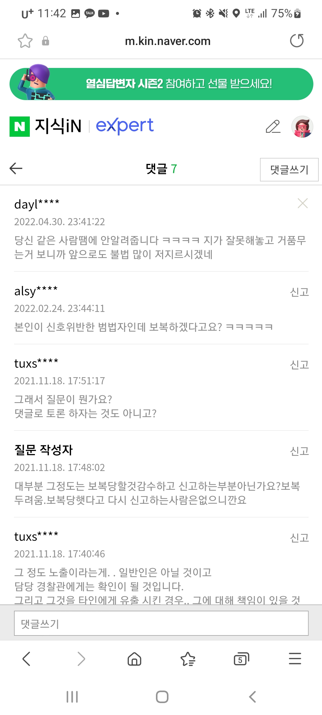 ºÒ¹ýÁÖÂ÷ÇÑ ÆÐ¹Ð¸®Ä« Âï°í ÀÖ¾ú´Âµ¥ ¸Ö¸®¼ ½Ä±¸µéÀÌ ¿À¸é¼ ³ªº¸°í  °æ¸êÇÏ´Â ´Ü¾îµé ÀÚ±âµé ³¢¸® ´ëÈÇÏ´Â °Í ó·³ ½ñ¾ÆºÎÀ½.. Àú XX´Â ¿Ö ³²ÀÇ Â÷¸¦ Âï³Ä, ±×´Ï±î Áö°¡ ¹ºµ¥ ³²ÀÇ Â÷¸¦XX ³Ê¹« ¿ô±ä´Ù  µîµî