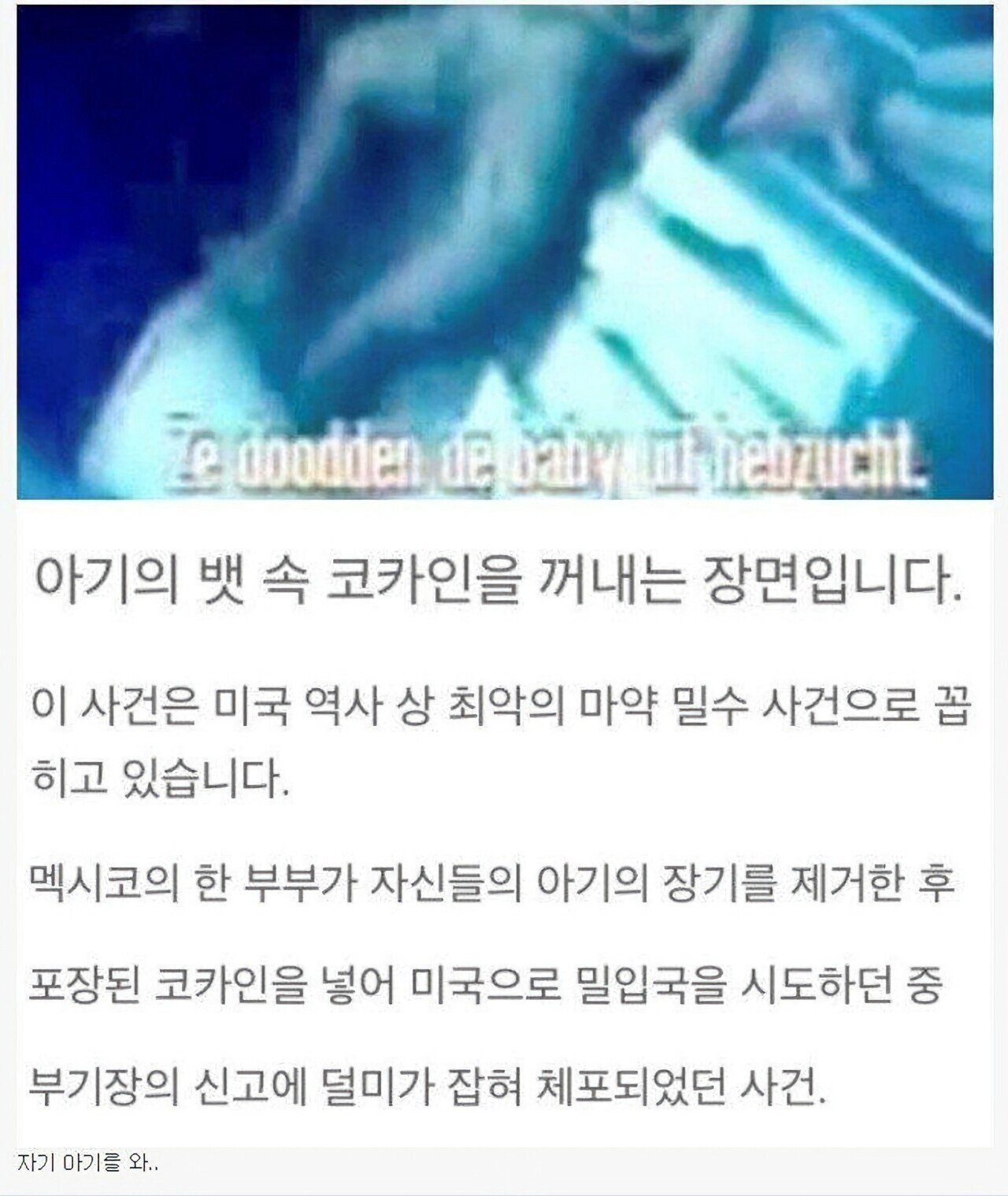 ¿Ü±¹ÀÚ·áÁß È帴ÇÏÁö¸¸ ¸»ÇϰíÀÚ ÇÏ´Â ¹Ù¸¦ ¾Ë·ÁÁÖ´Â »çÁø(À¯¸íÇÑ ¿Ü°èÀÎ ¼ö¼ú© µî) Àº °ÅÁø ÆäÀÌÅ© ´º½º¶ó°í º¸¸éµÊ. https://www.miaminewtimes.com/news/cocaine-smuggled-in-dead-babies-and-miamis-other-weirdest-urban-legends-8257605 µµ½Ã±«´ãÀÓ.