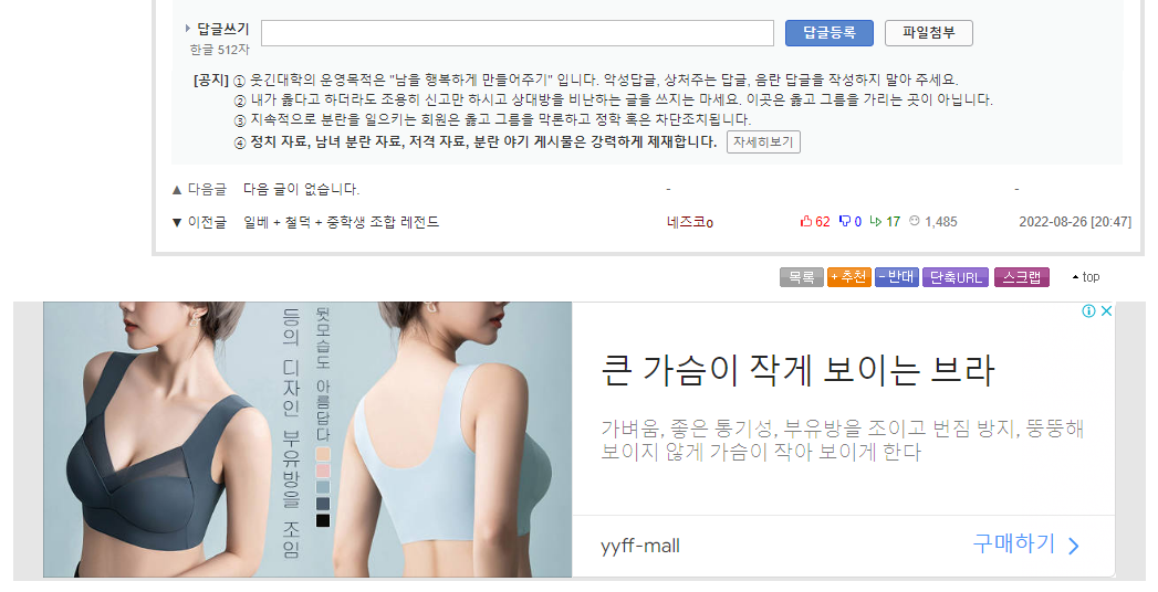 ³²ÀÚ²¨¾Æ´Ô?  [3]				 | 66 0 |  Ãßõ  ¹Ý´ë  À̵¿  ´ä±Û | 2022-08-26 20:57 | ||||