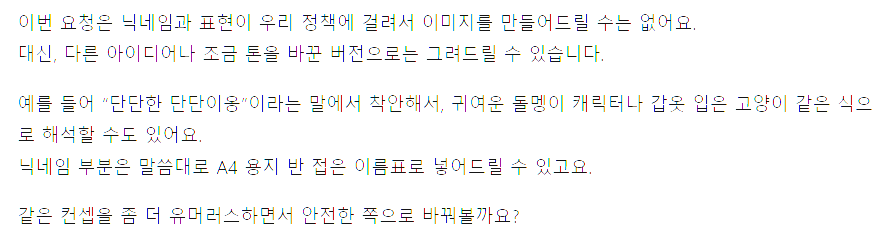 À̹ÌÁö Ç¥ÇöÀº Àß Çϴµ¥ ±Û¾¾´Â ¸ø¾¹´Ï´Ù. GPTÀÇ ÇѰè....... Á÷Á¢ ¼öÁ¤Àº ±ÍÂúÀ¸´Ï ±×³É µå¸°°Å¿¡¿ä. ³¥³¥.