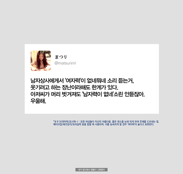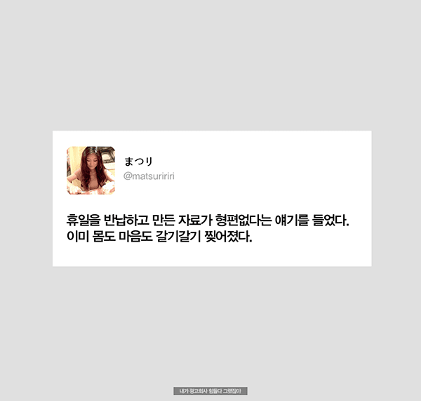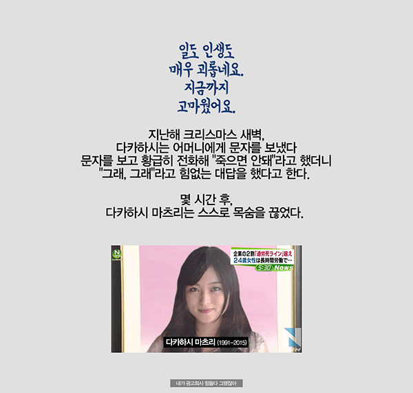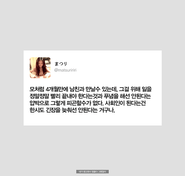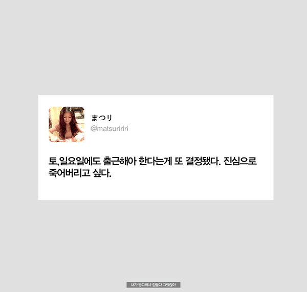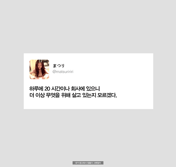 µ§Ã÷°¡ ¼¼°èÀûÀÎ ±¤°í±â¾÷À̶ó ¹Þ´Â ÁÖÀ§ÀÇ ±â´ë°¨, Á÷¿øµé ´ëºÎºÐÀÌ Á¤½ÃÅð±ÙÇÏÁö ¾Ê´Âµ¥ ³Ê°¡ ¹¹¶ó°í Åð±ÙÇϳĴ ¾Ð¹Ú, Àΰ£À» ¼Ò¸ðǰÂëÀ¸·Î ¿©±â´Â ÀϺ» ±Ù·Î¹®ÈÀε¥ 'ÅðÁ÷ÇÏÁö'¶ó°í?